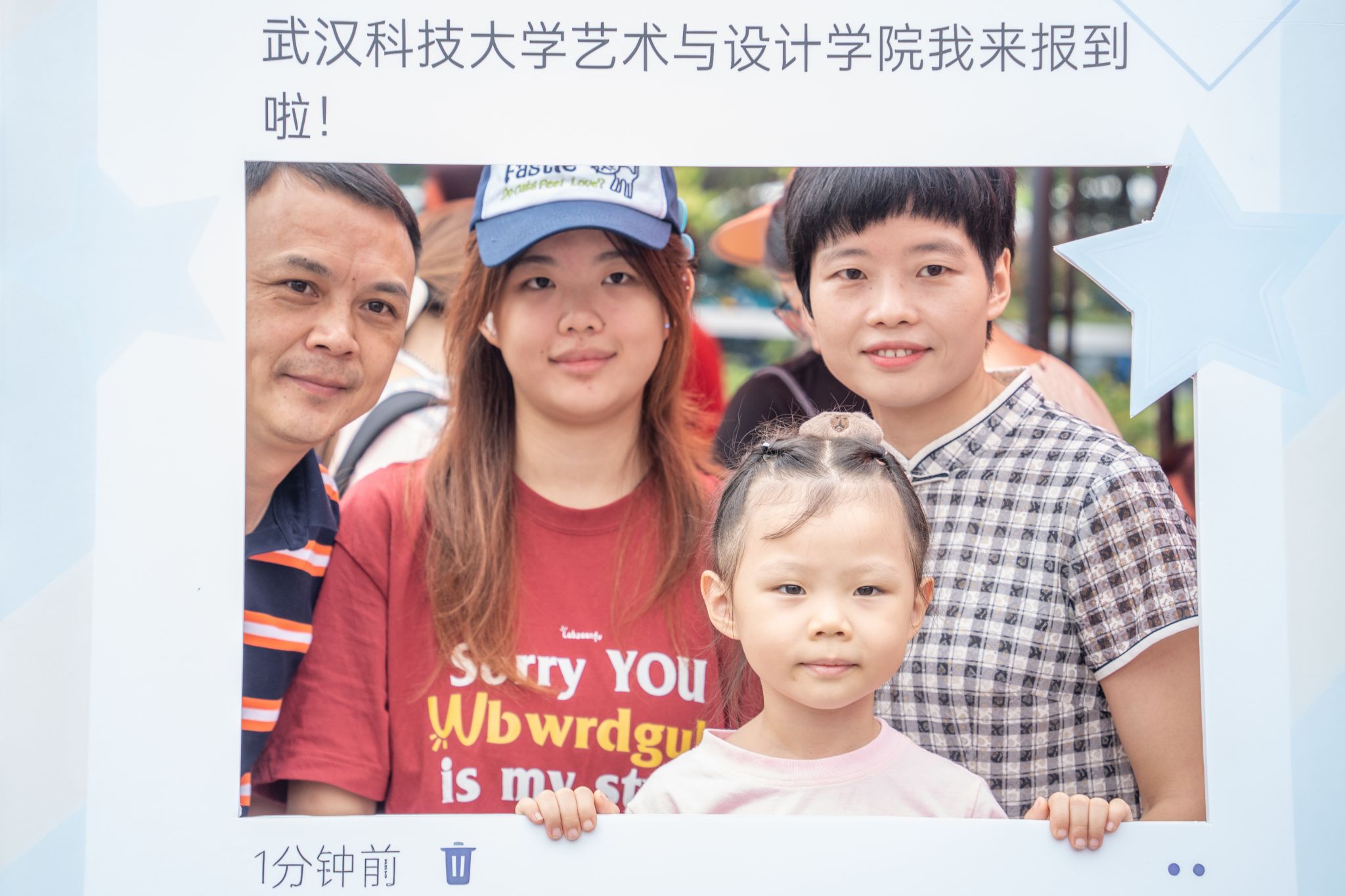 新生与家人及妹妹打卡 孙奕哲摄
