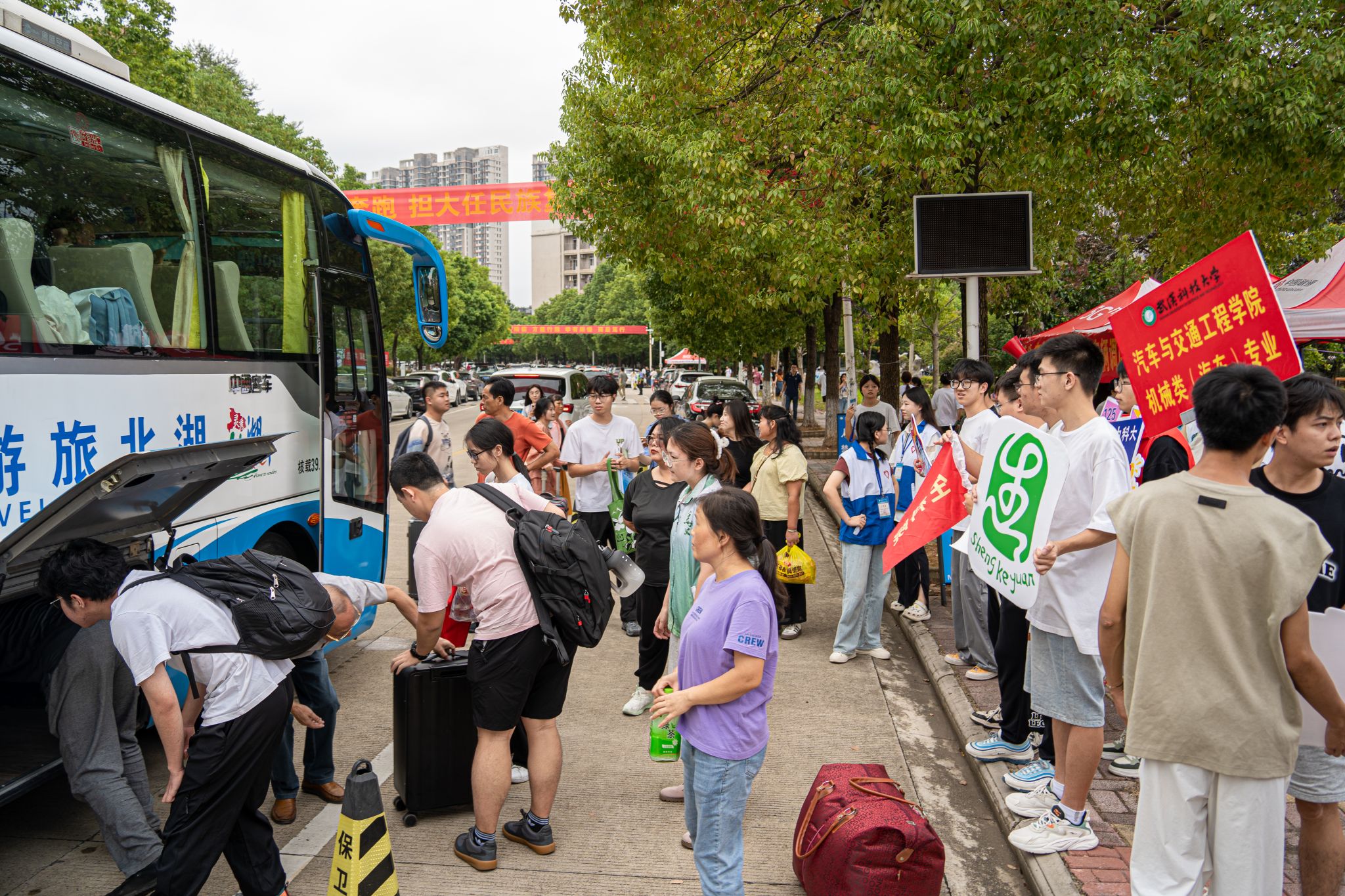迎新大巴到达南园迎新点 孙奕哲摄