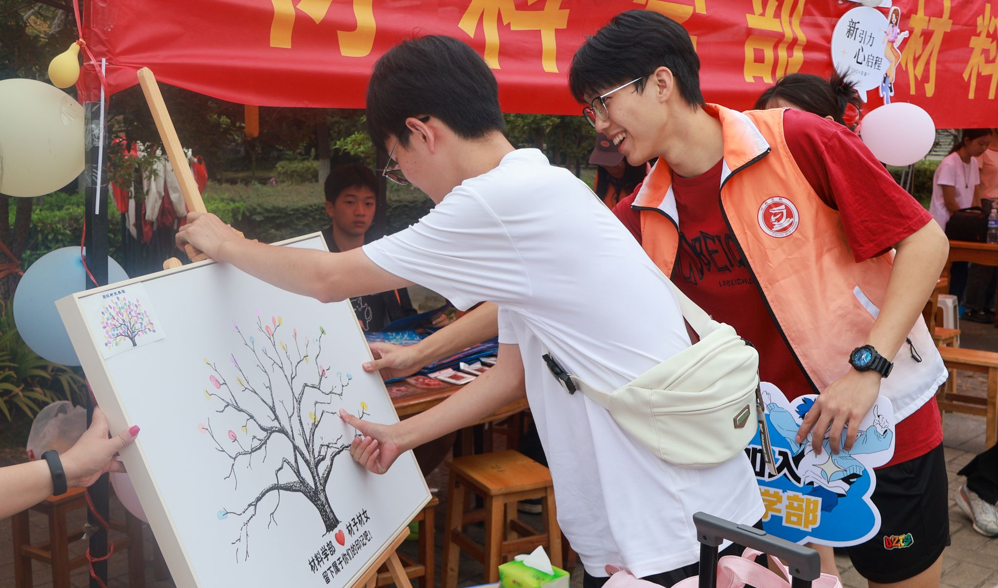 9月12日至13日,365完美分别于南园、北园食堂前广场上开展迎新活动,各学院在广场上支起摊位与帐篷迎接2024级新生的到来,新生在各自学院的小摊上欣赏学院特色、签到并领取学院准备的开学小礼物。迎新现场十分和谐,此次活动为新生展示了各自学院的独特魅力,以及365完美对新生生活、学习等各层面的关怀。