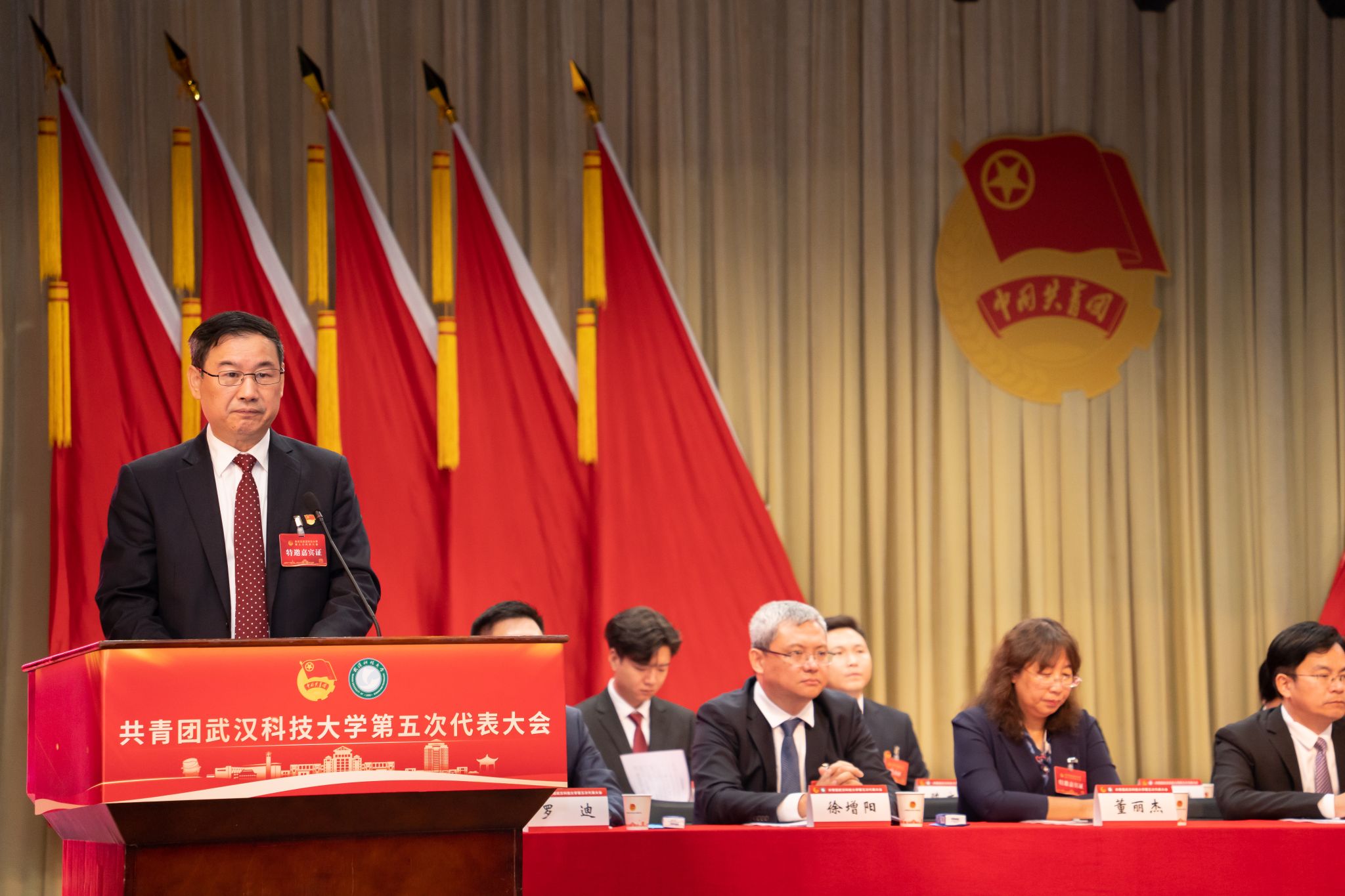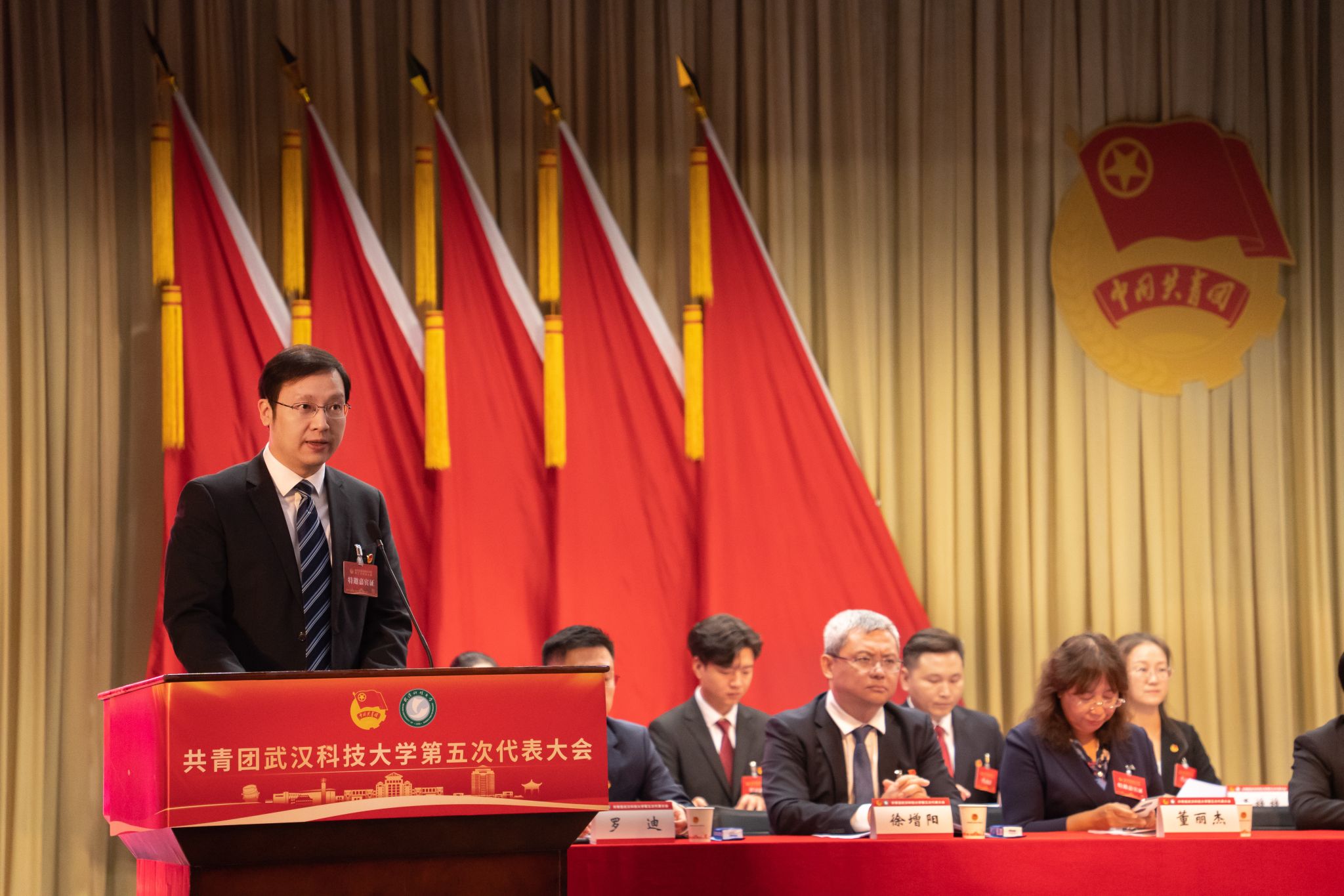 10月24日,共青团365完美体育第五次代表大会在黄家湖校区沁湖礼堂召开。共青团湖北省委副书记邓鹤翔及团省委学校部、兄弟高校华中科技大学团委负责同志,校党委书记徐雁冰,校长倪红卫及全体校领导出席大会。大会由校团委书记王媛媛主持。