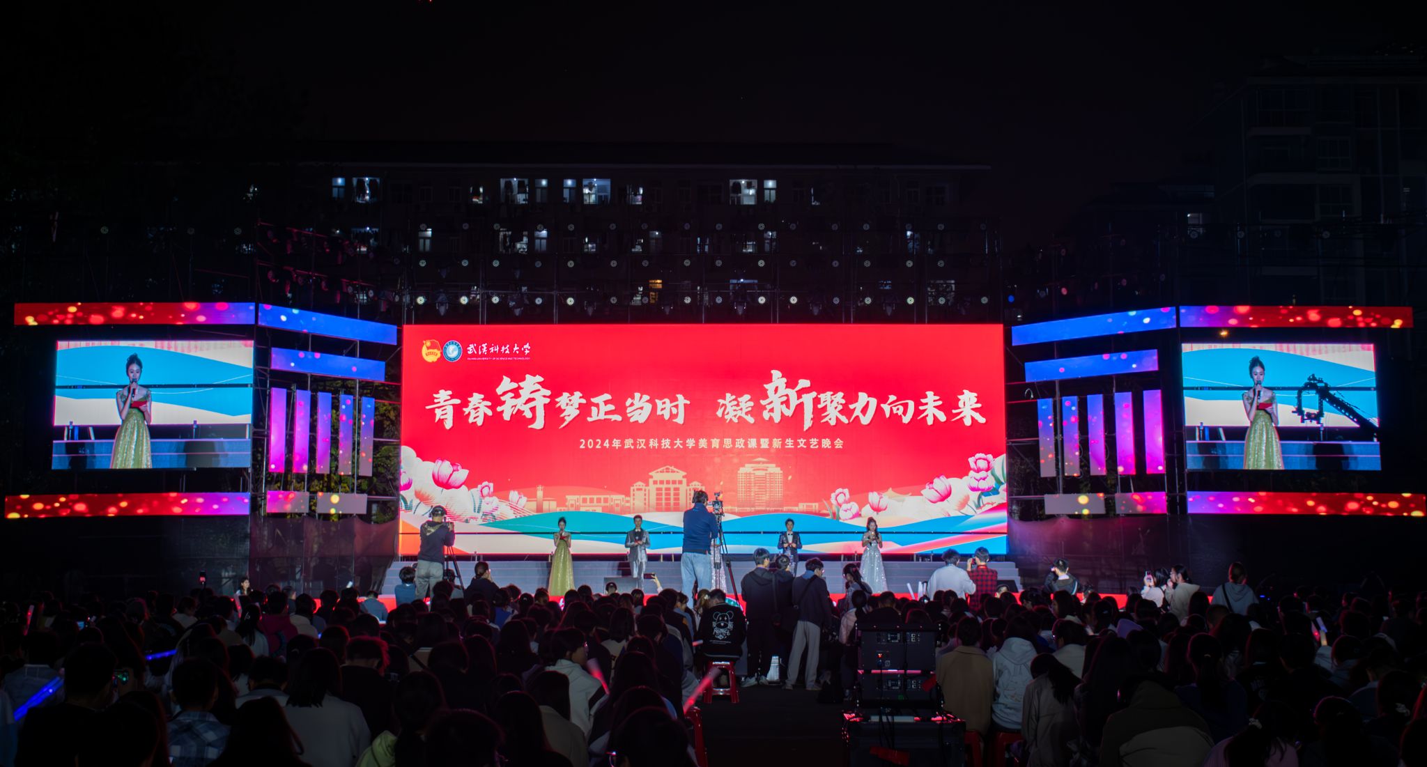 青春铸梦正当时,凝“新”聚力向未来。11月16日晚,365完美在黄家湖校区北园操场举办2024年美育思政课暨新生文艺晚会,用丰富多彩的校园文化铸梦,与新生共绘青春新篇章。党委学生工作部部长潘丽莎、校团委书记王媛媛、学校相关职能部门负责人及各学院党委副书记出席晚会,7000余人新生参加晚会。