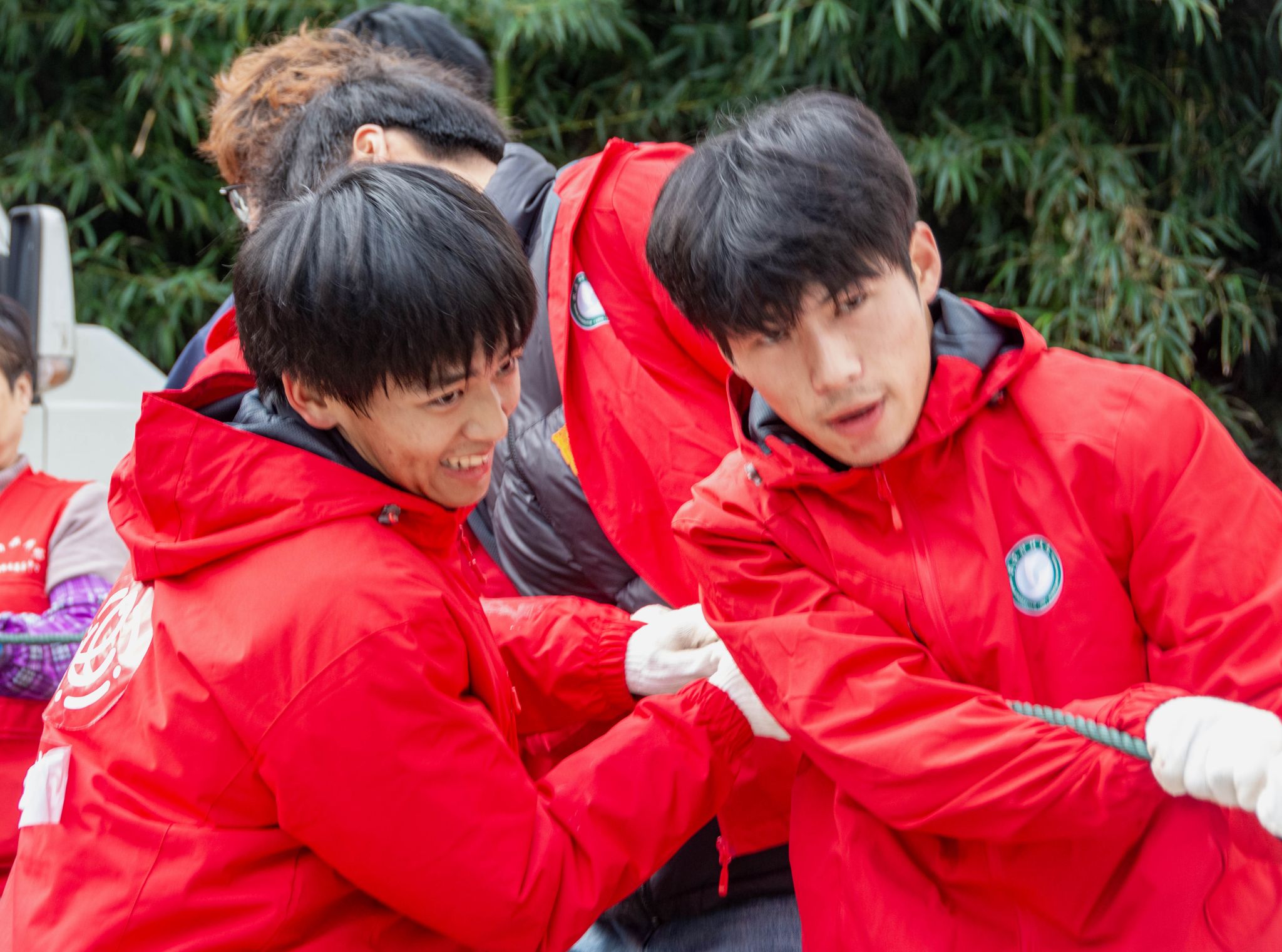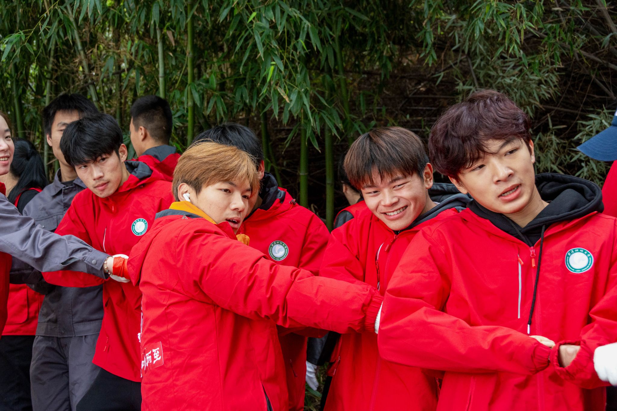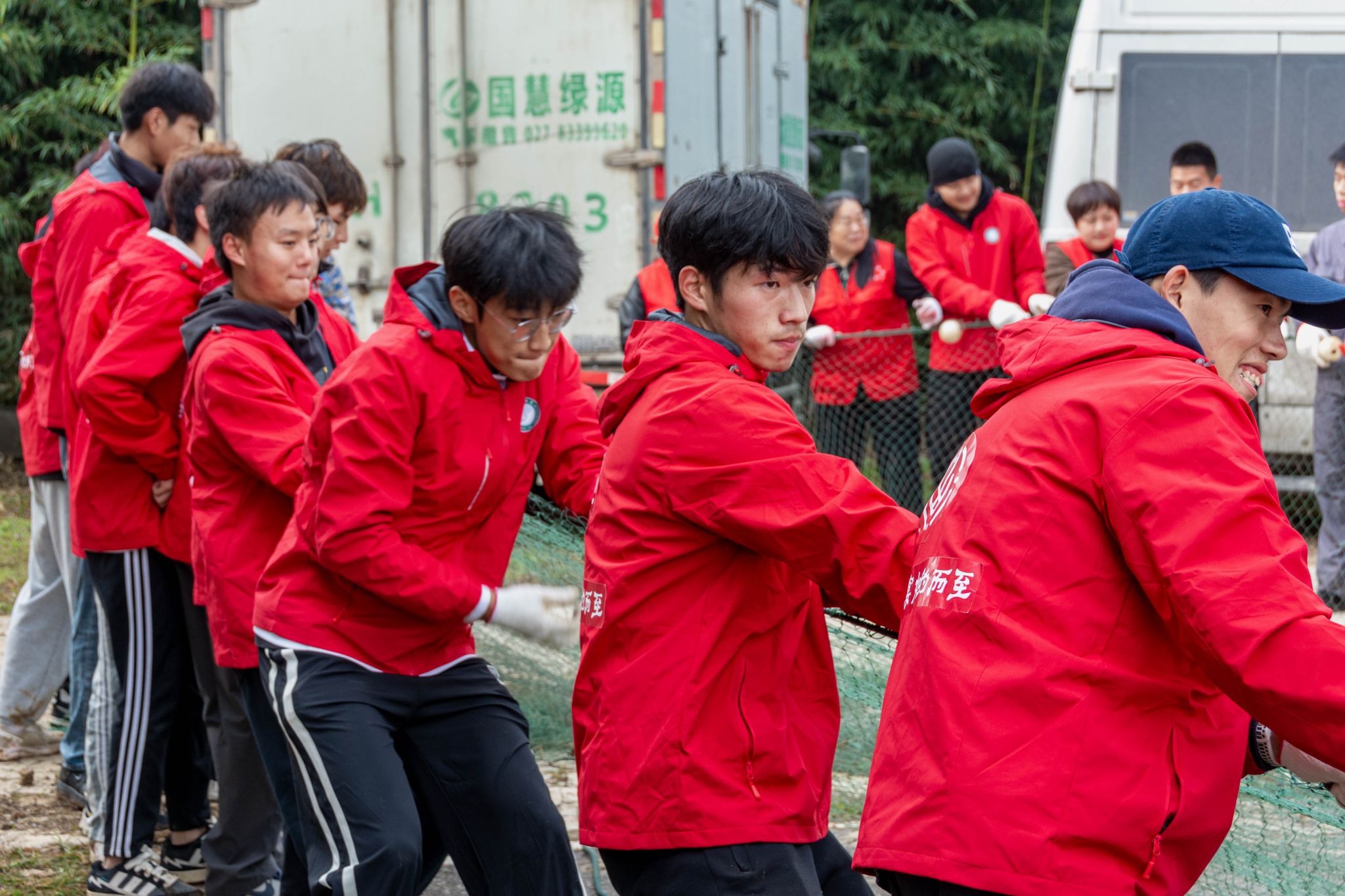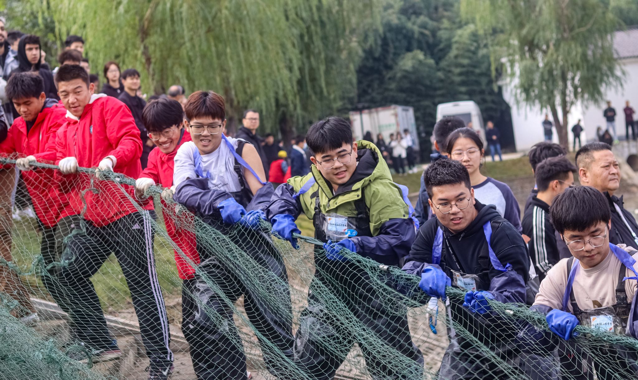 学生共同拉网 杨欣怡摄