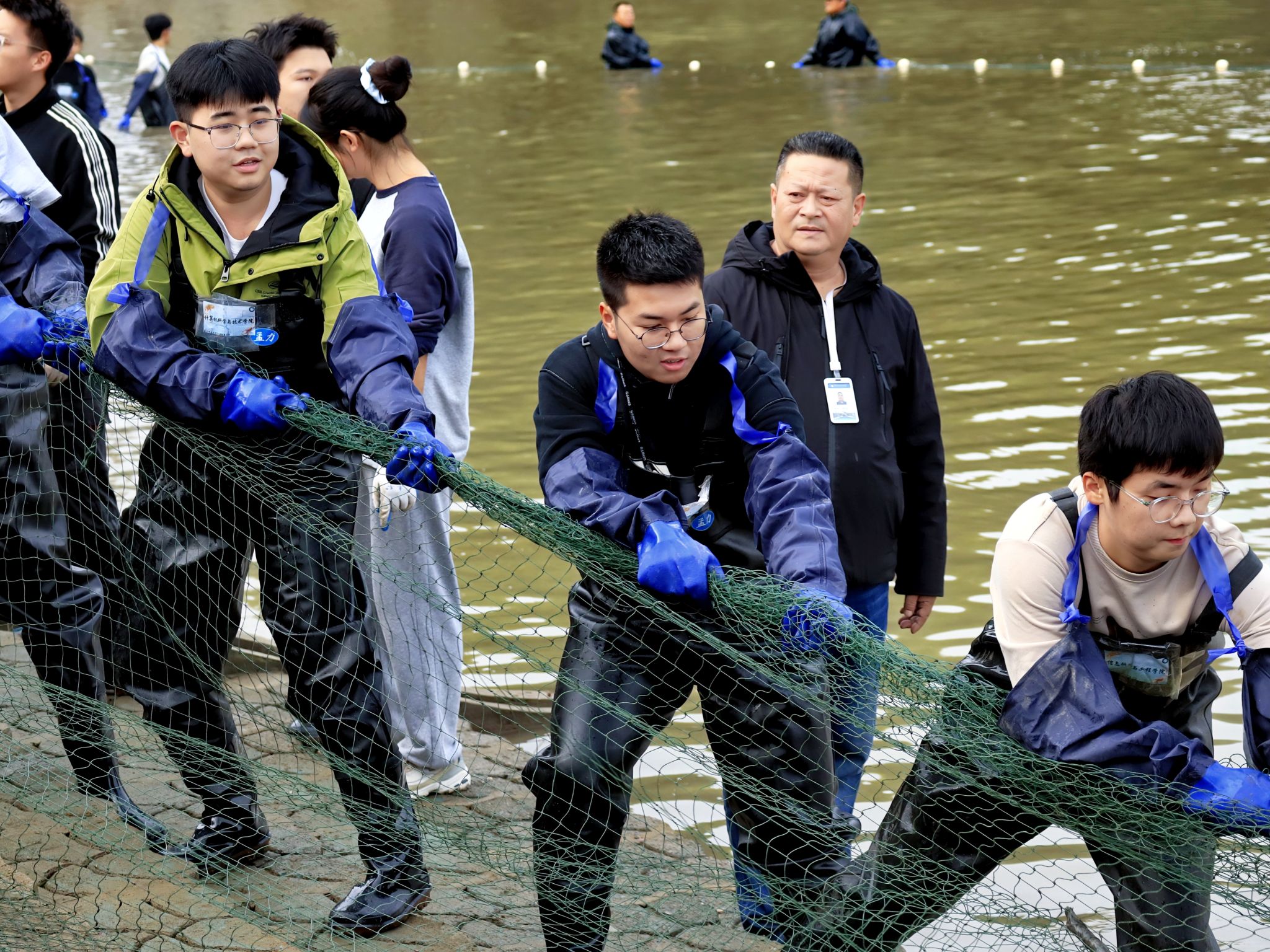 同学们拉网捞鱼 吴毅萌摄