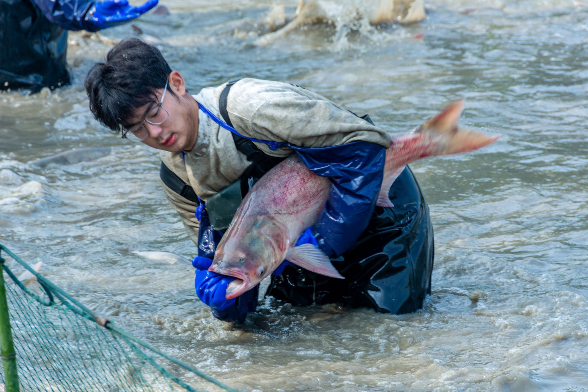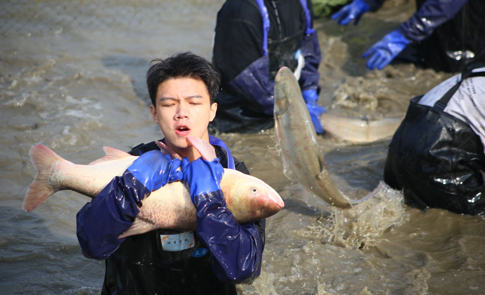 生科院两手抓鱼特写 陈楷林摄