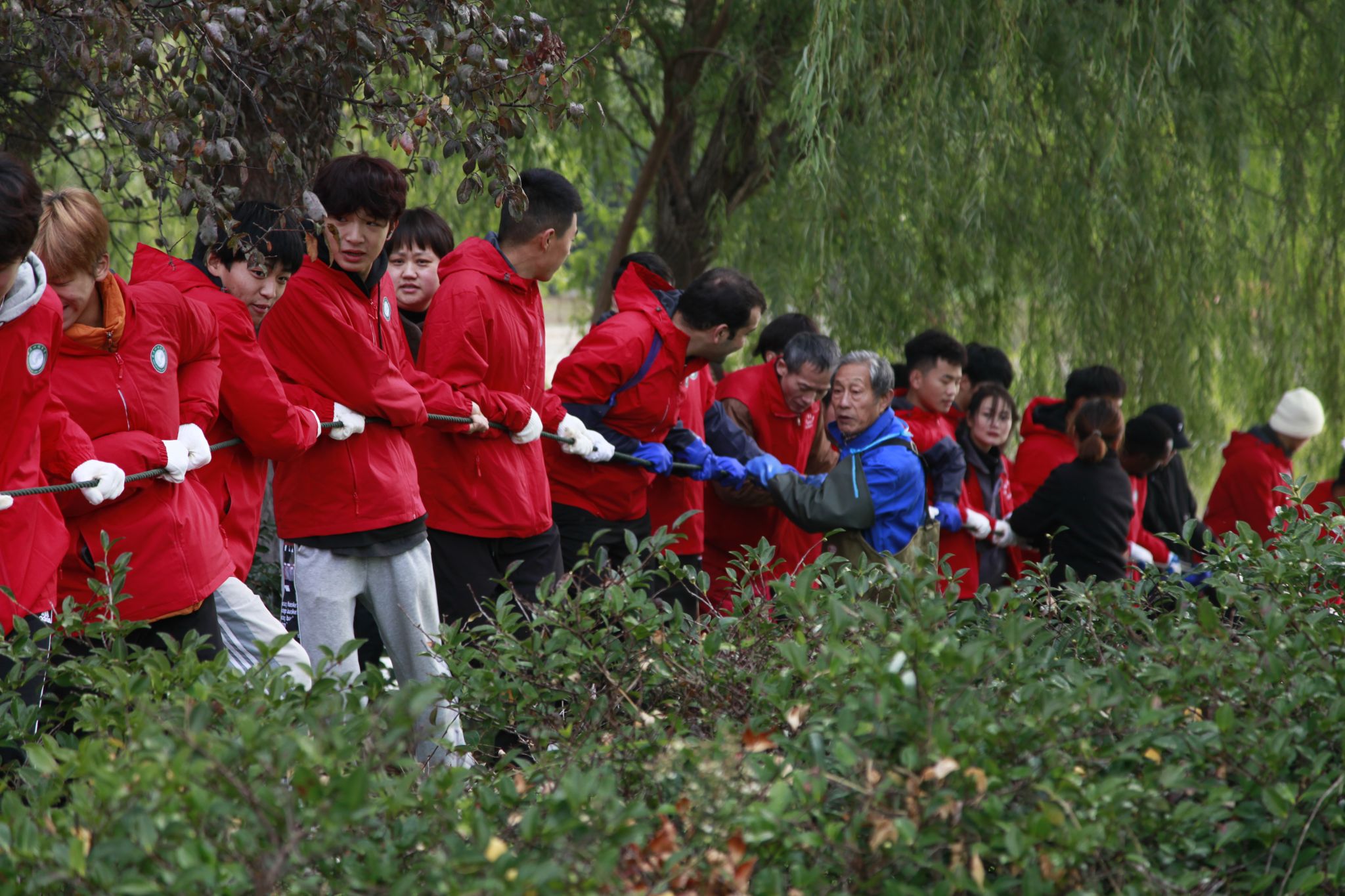 学生参加拉网 吴磊摄 (1)