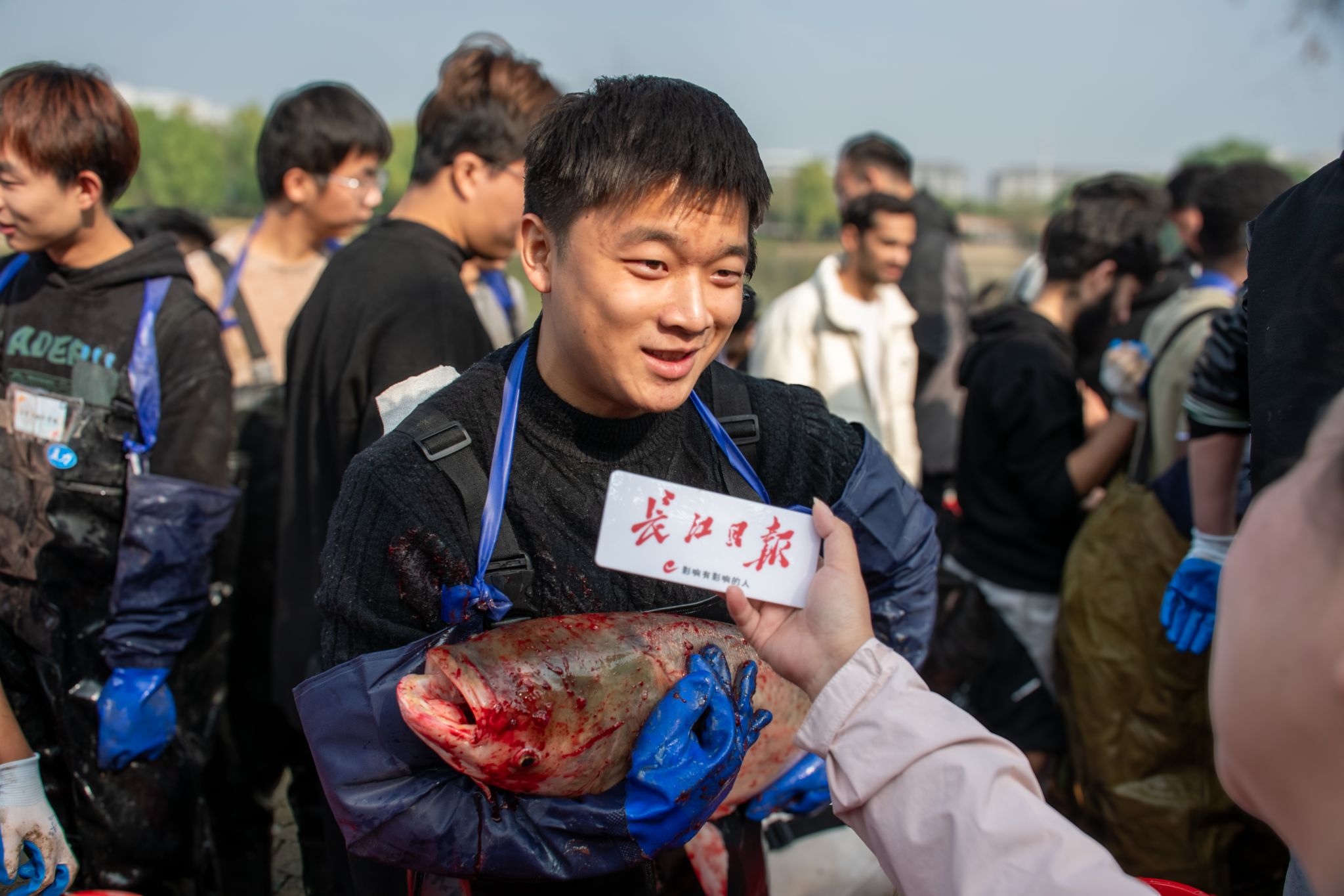 后勤工作人员展示鱼 姜永鸿摄
