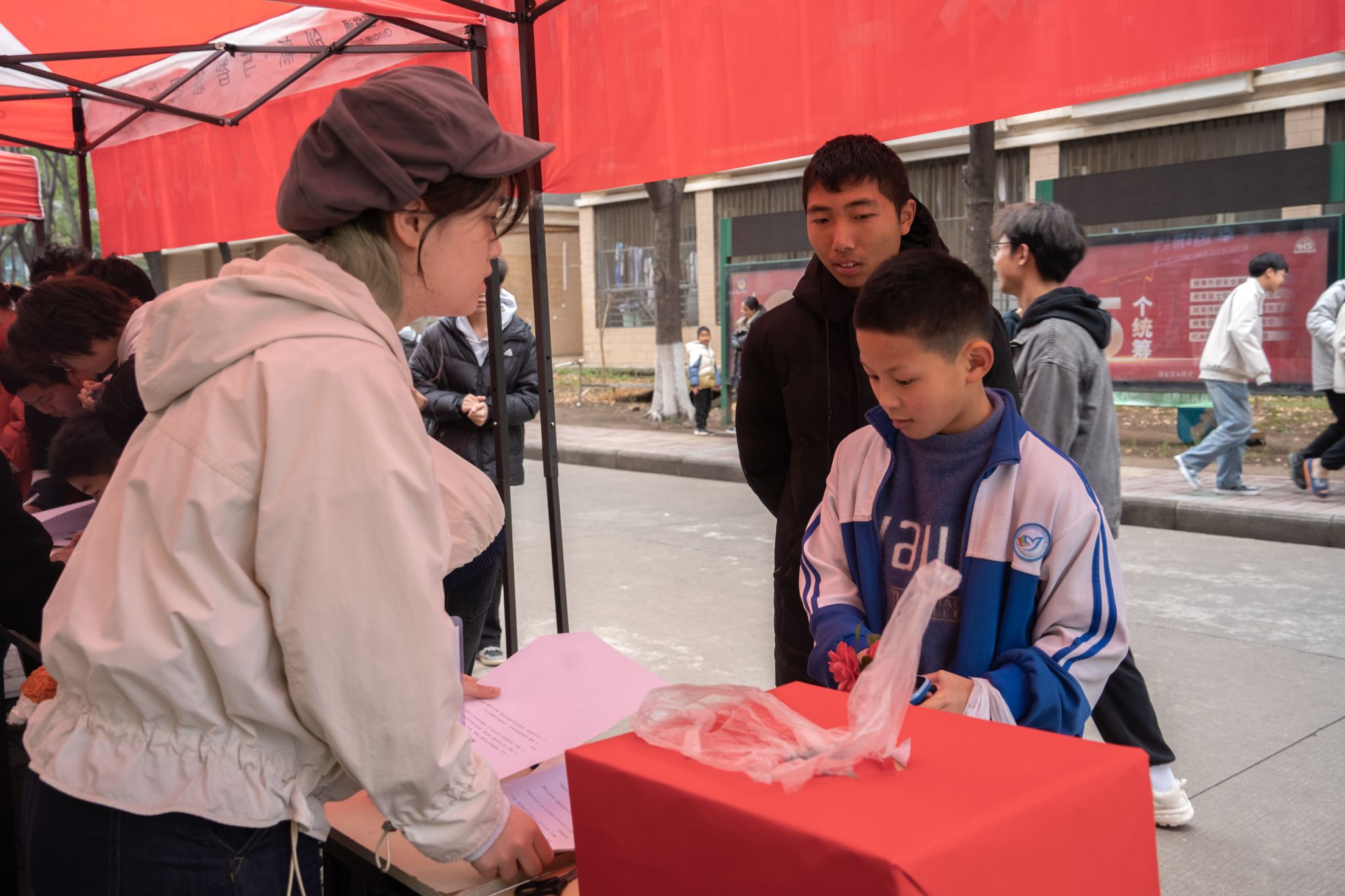 活动工作者向同学解答疑惑 高文帅摄