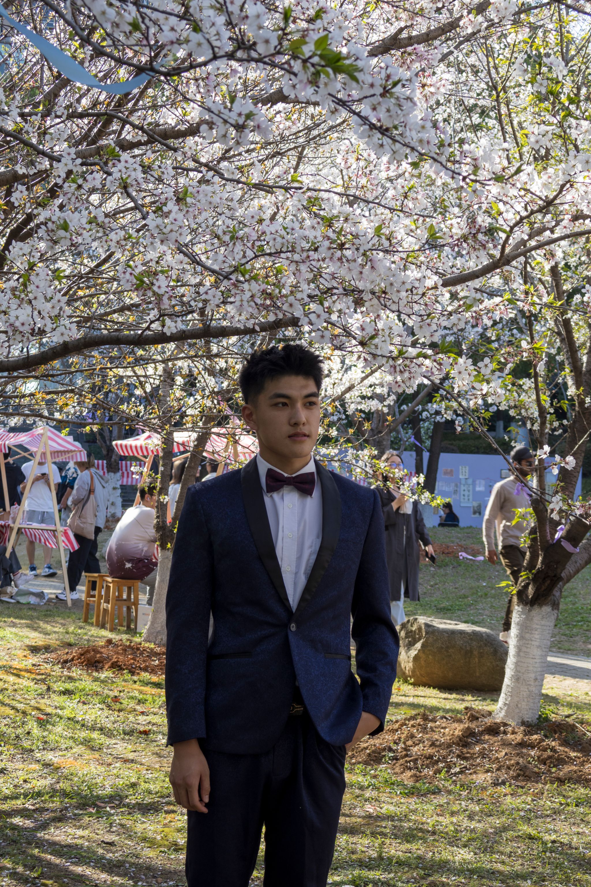 帅哥与樱花树合影 吴毅萌摄