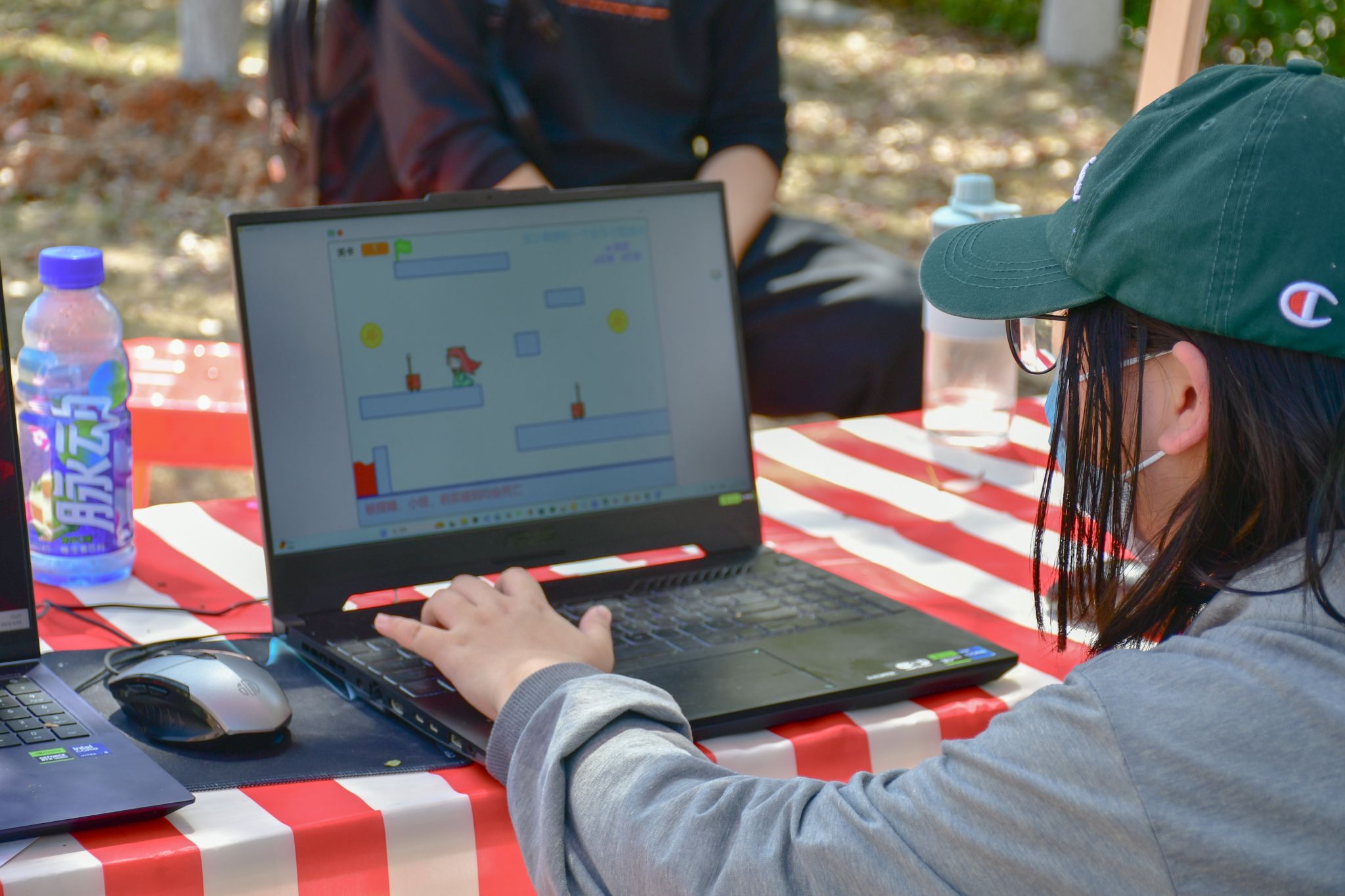 学生游玩小游戏特写 陈楷林摄
