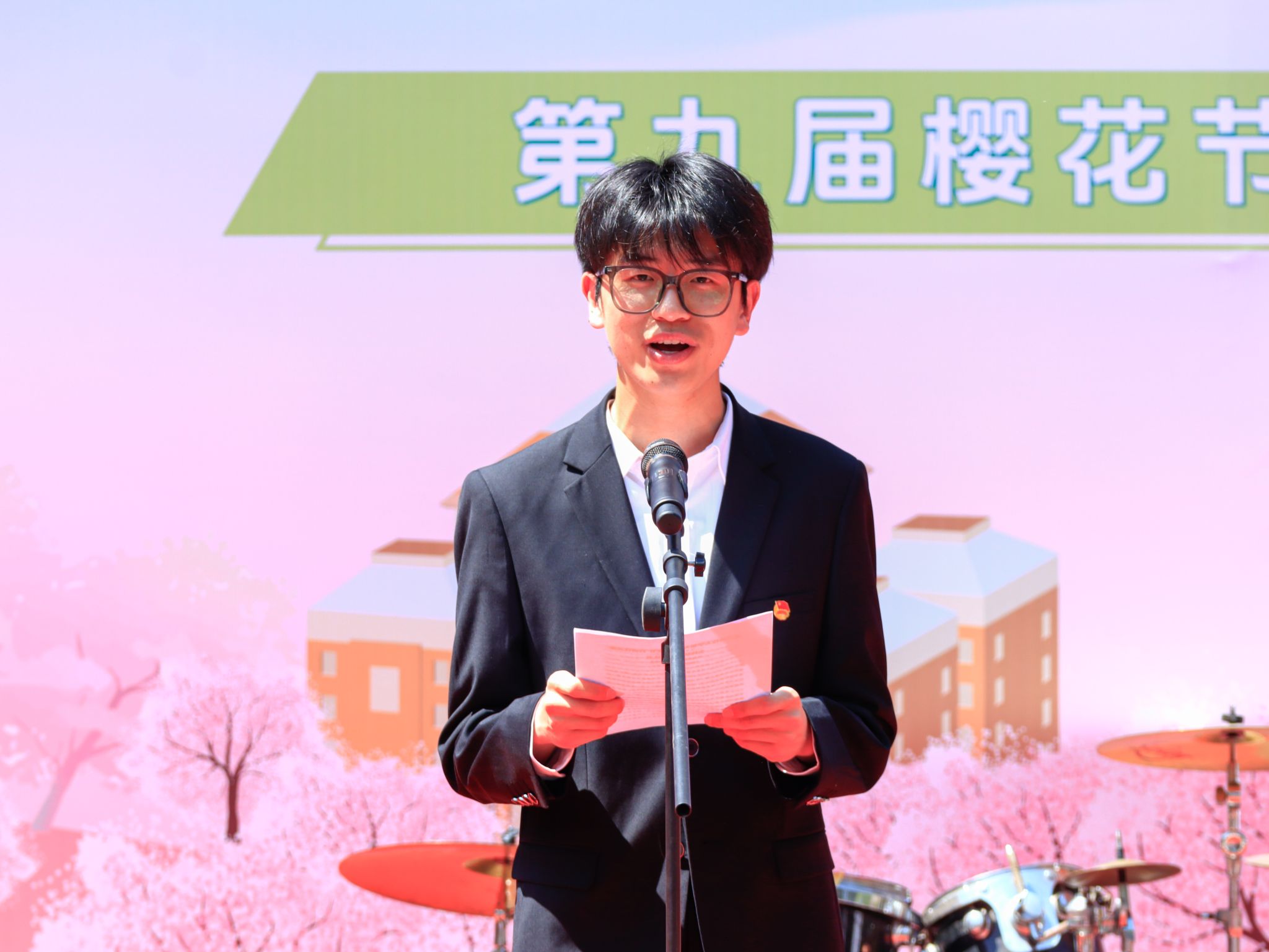 学生代表、社团管理部负责人刘新昊宣读樱花节倡议书 孙正恒摄