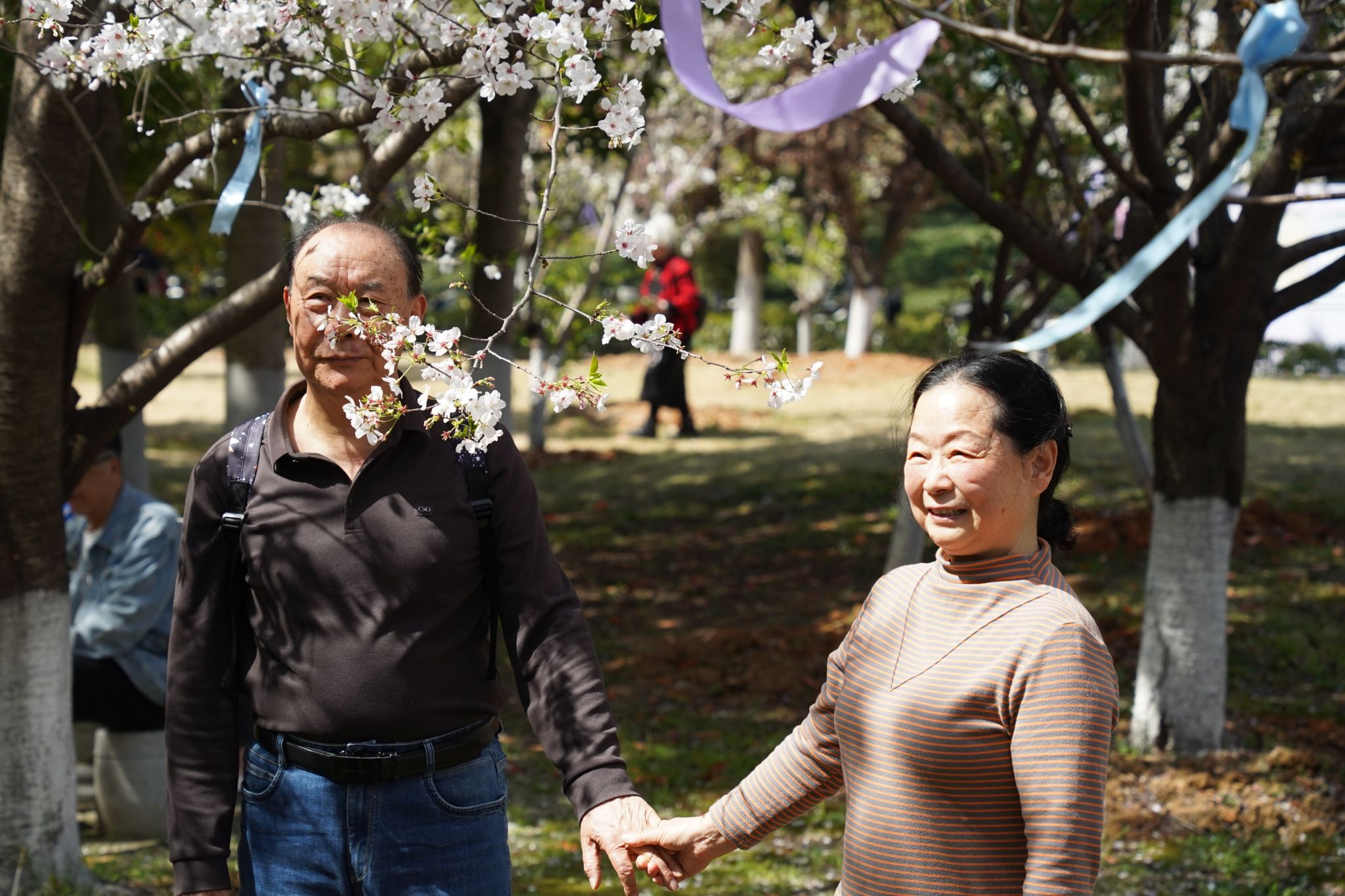本校退休教师返校赏樱 王涵摄