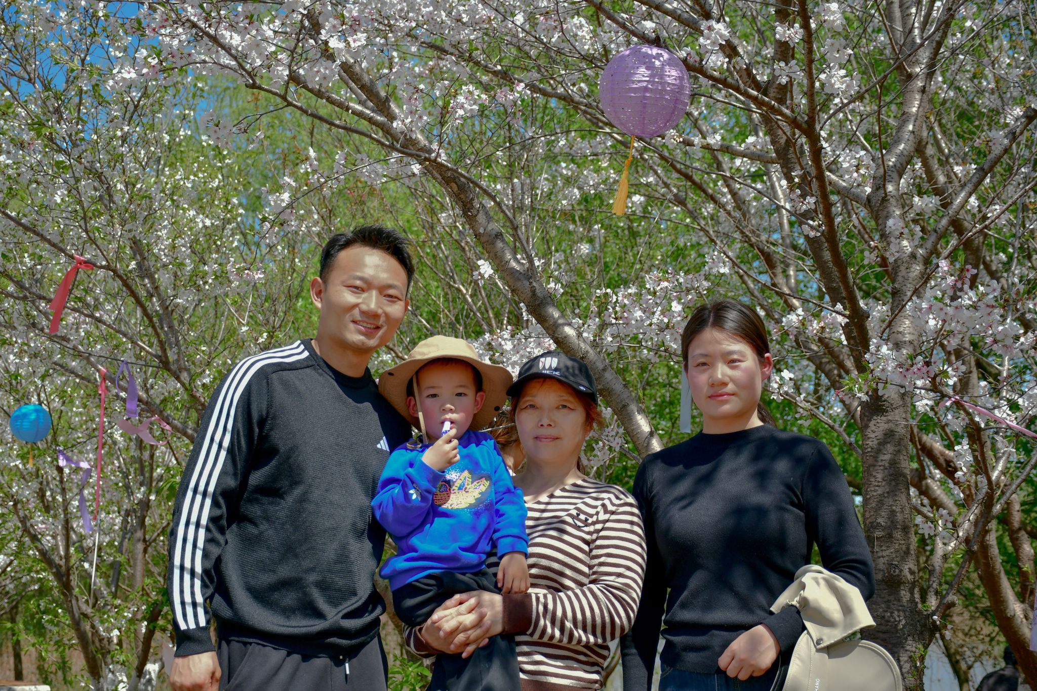 樱花树下的一家人 吴毅萌摄