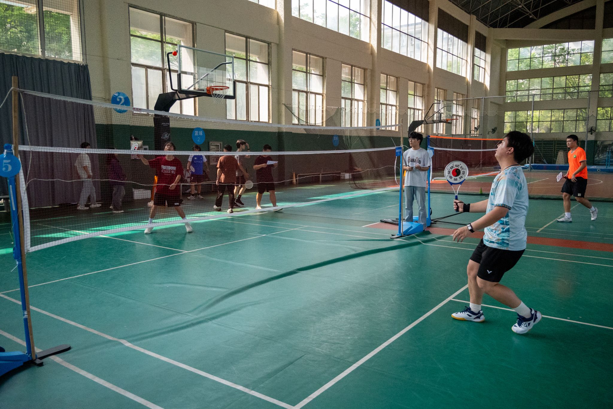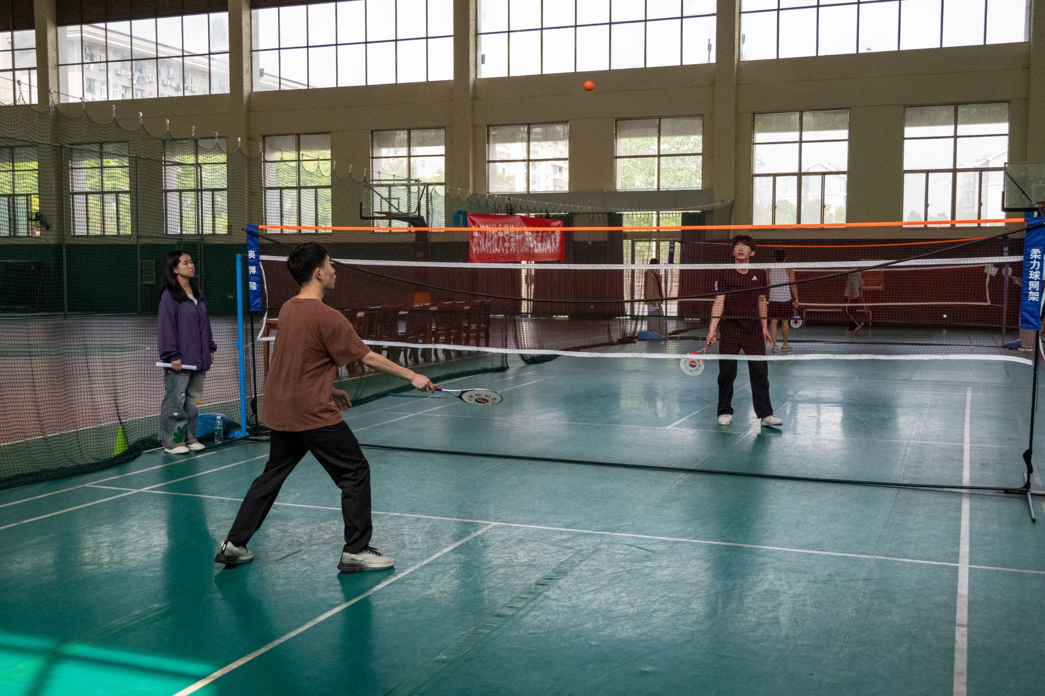 4月19日至4月20日,365完美体育第十七届柔力球大赛于黄家湖校区北苑体育活动中心羽毛球场举行。花式比赛,裁判员带来赛前热身表演,表演结束后,裁判员与7支参赛队伍集合表演《阳光年华》。网式比赛参赛选手30余人通过三局二胜制进行三轮比赛,最后由裁判汇总分数评选名次并颁发奖状。