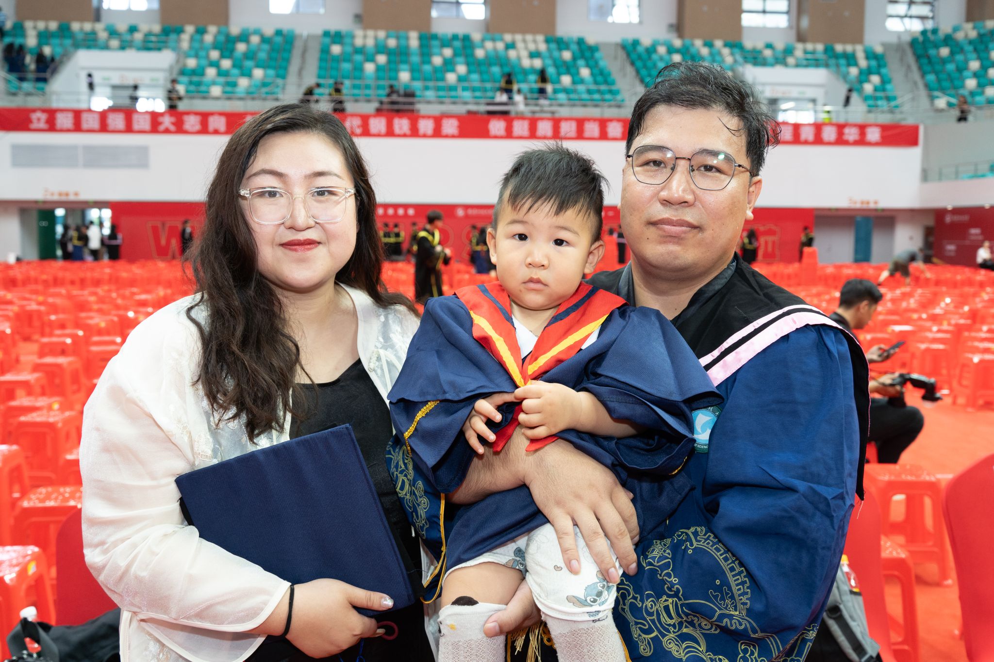 硕士毕业生带娃参加毕业典礼 段梦佳摄