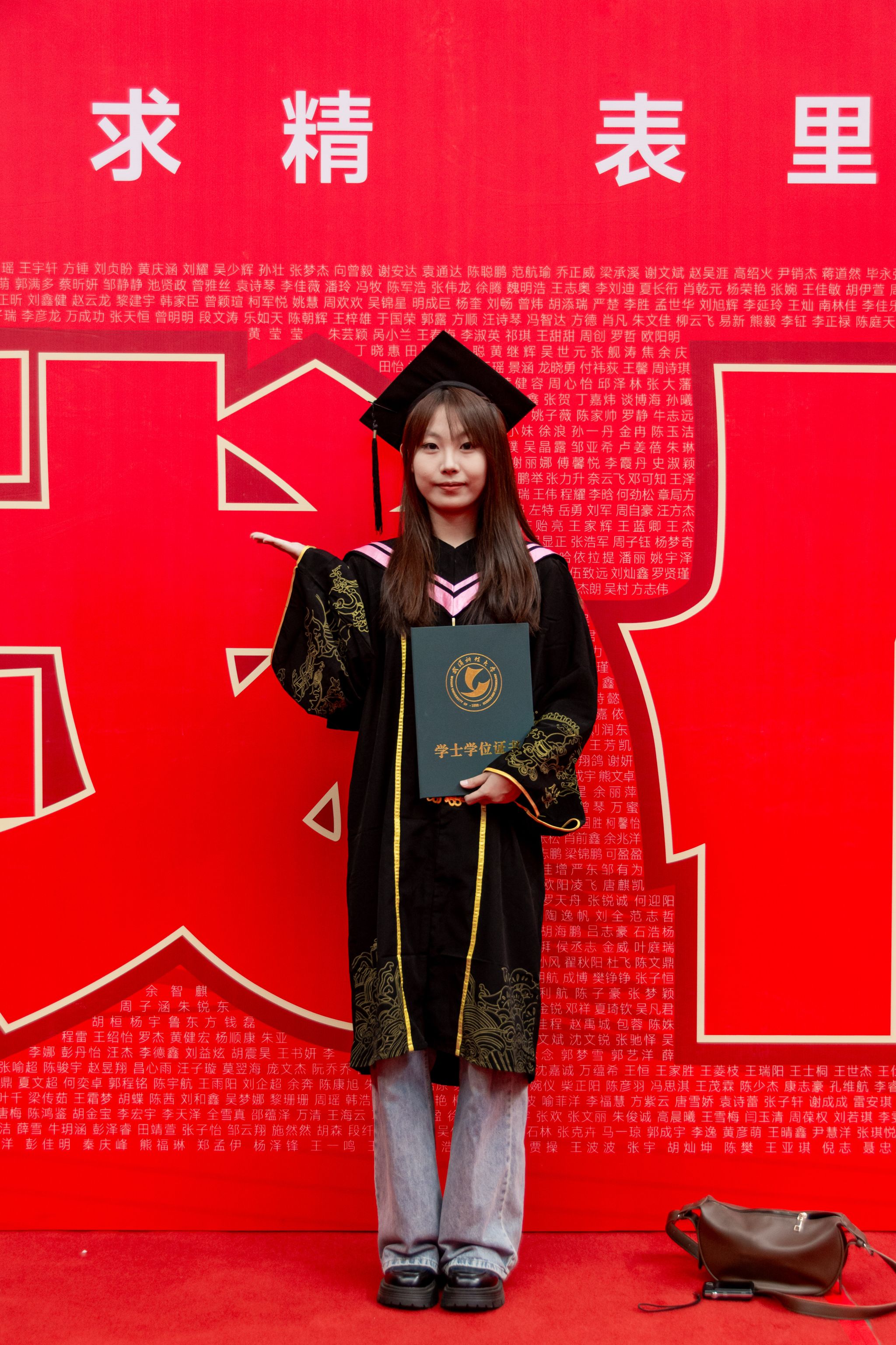 毕业生与自己的名字合影 吴磊摄