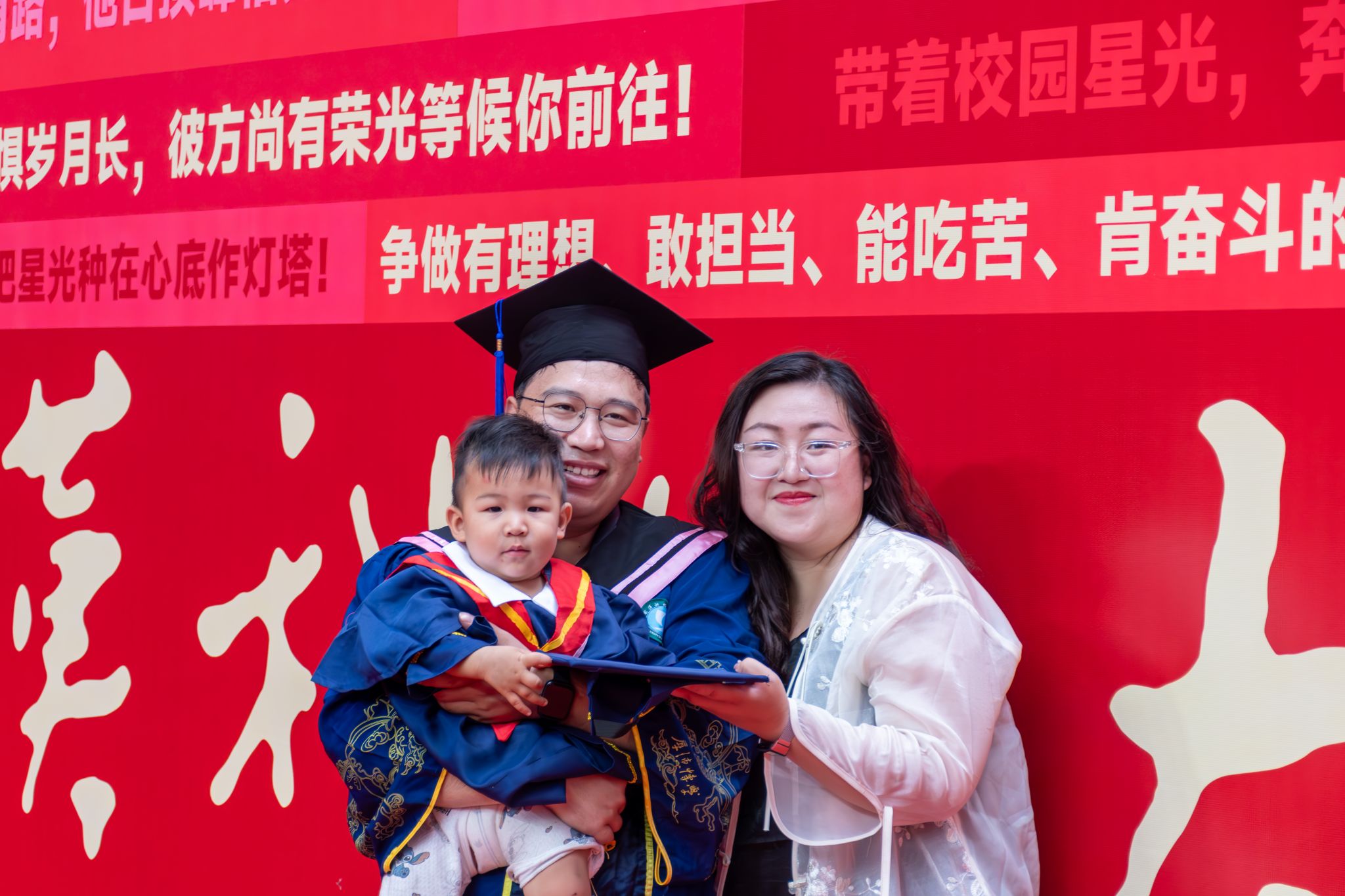 MBA硕士带儿子参加毕业典礼 孙正恒摄