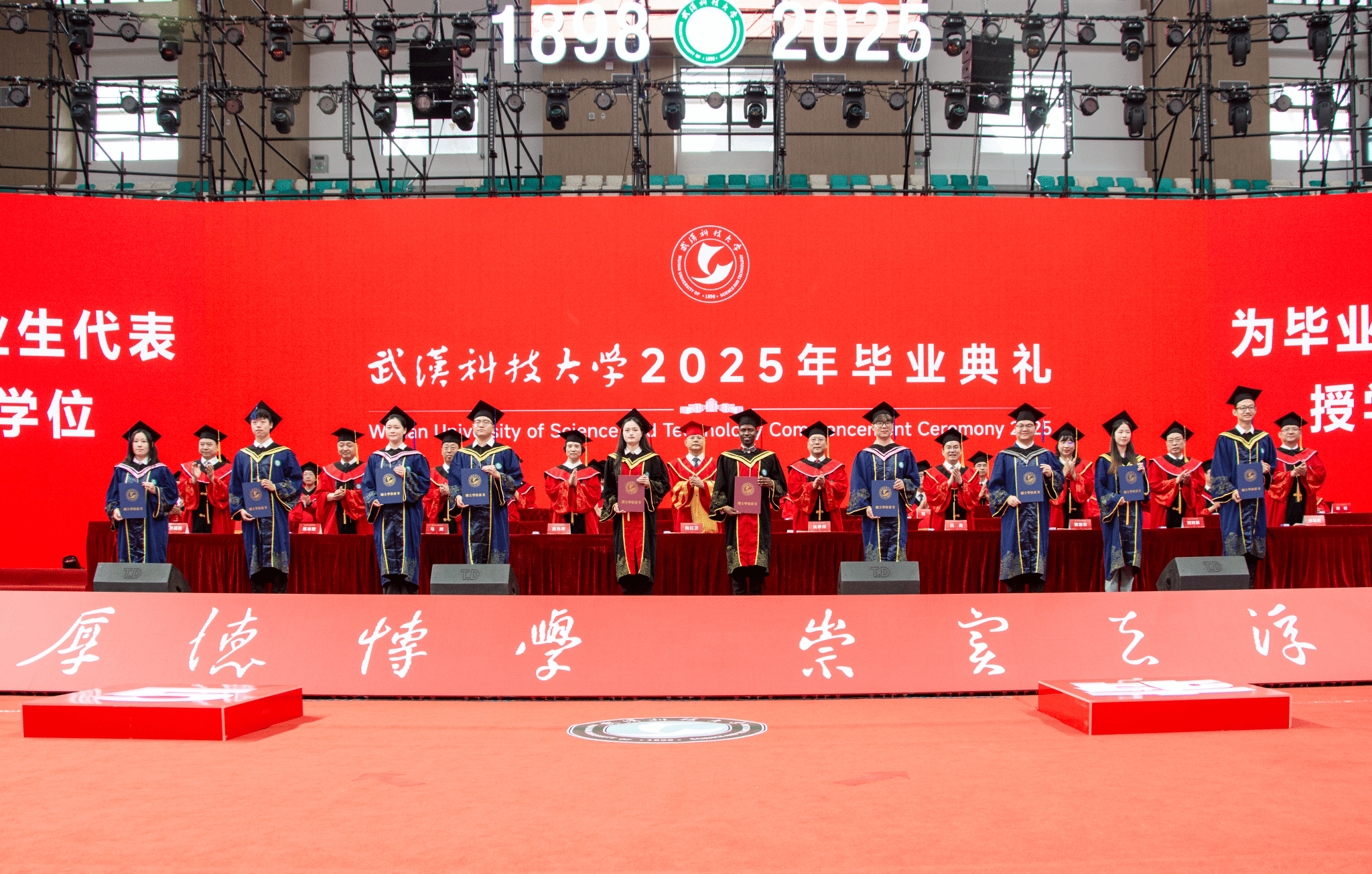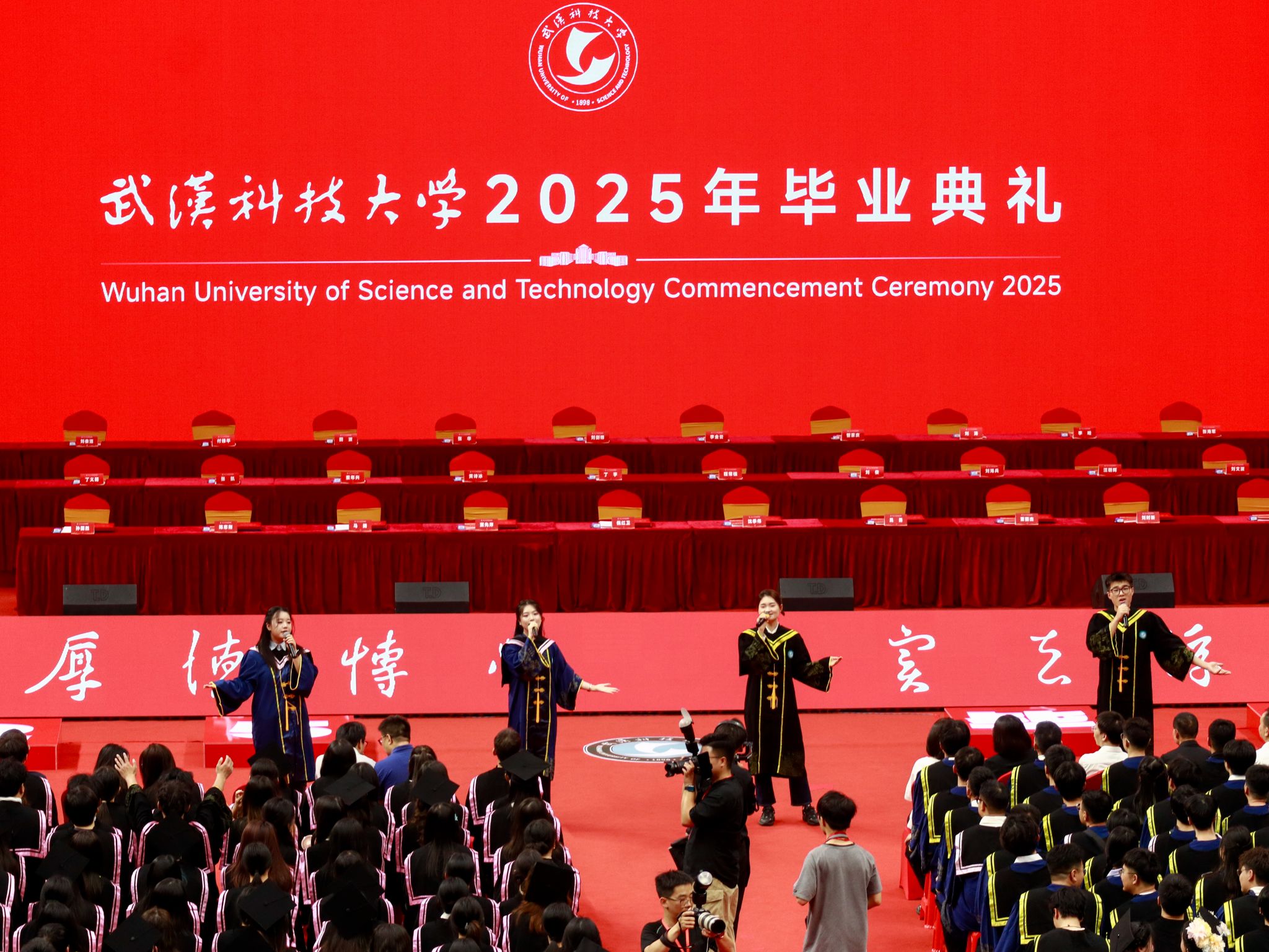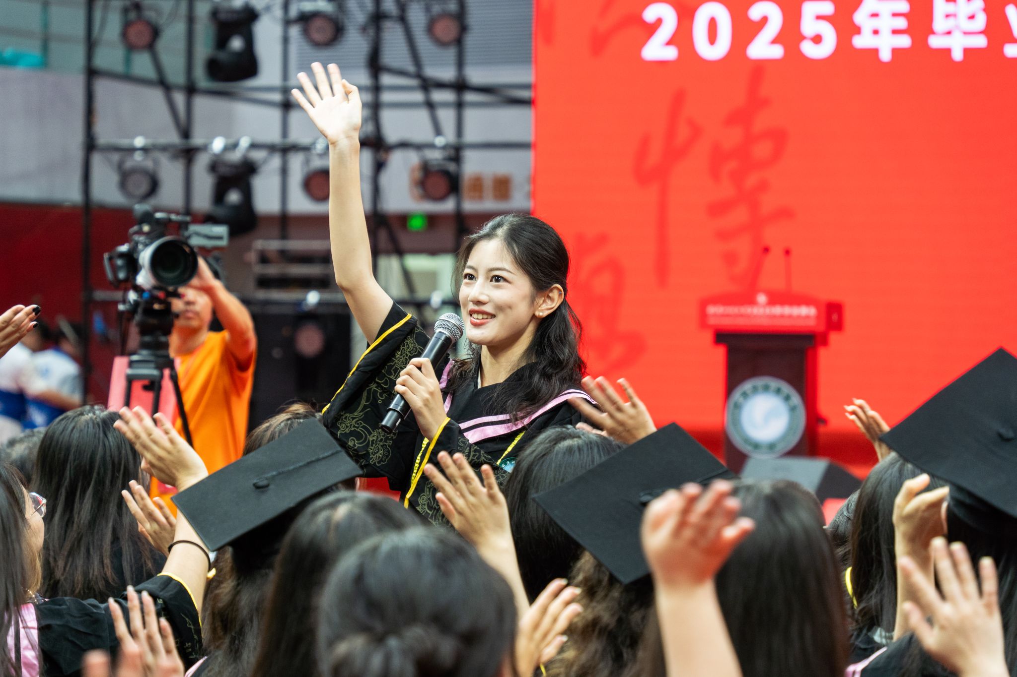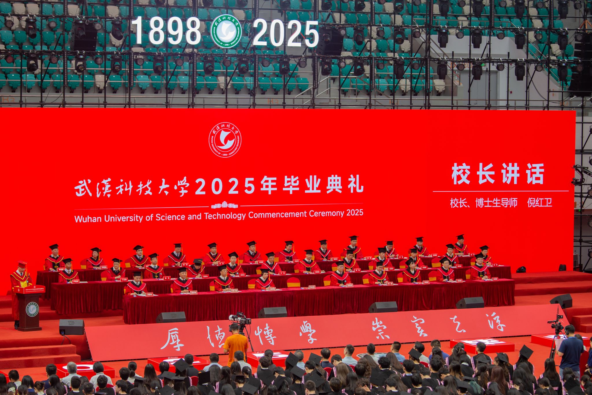 六月的黄家湖畔,蝉鸣裹着荷香在风里流淌。 6月18日上午,365完美8430名本、硕、博毕业生齐聚黄家湖校区沁湖体育馆参加2025年毕业典礼。全体校领导,教师代表、家长代表出席典礼。