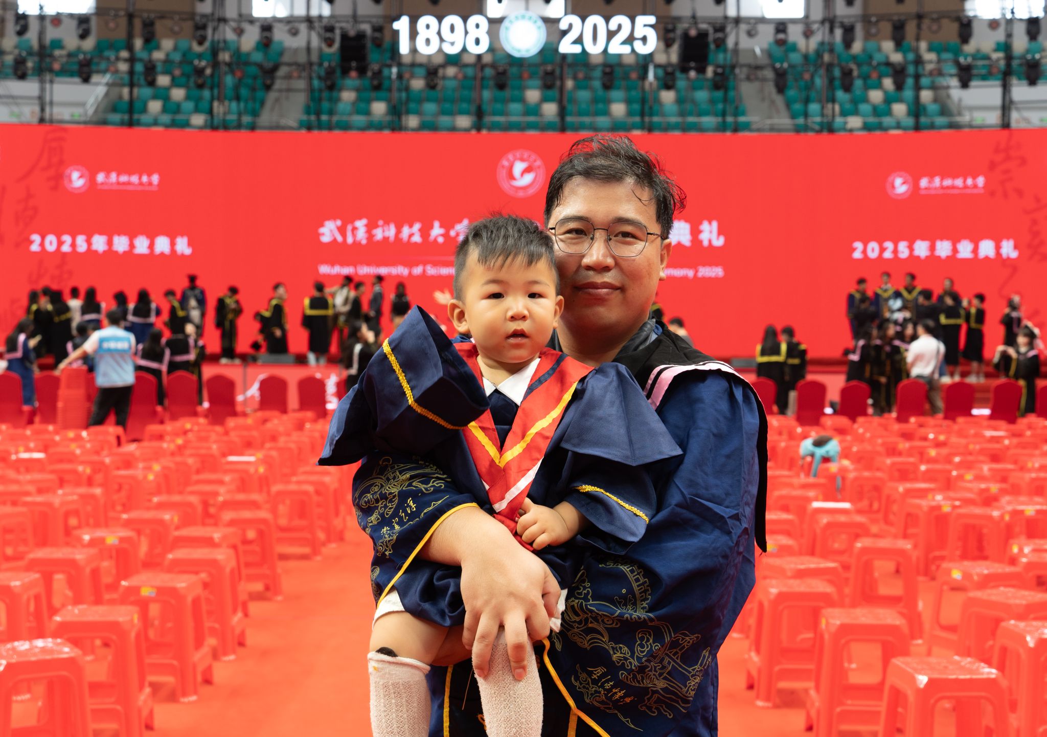 父子一起参加毕业典礼 高文帅摄