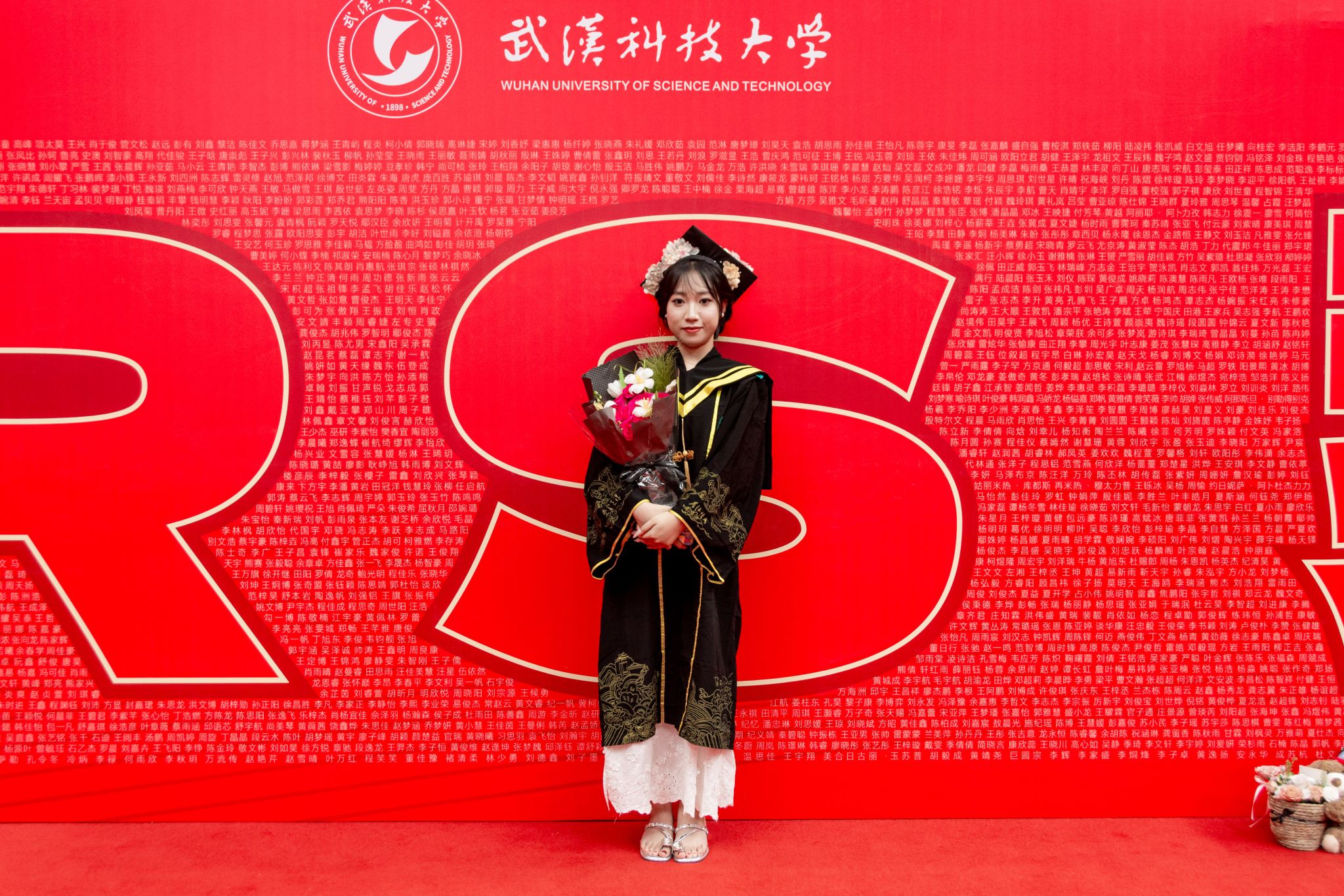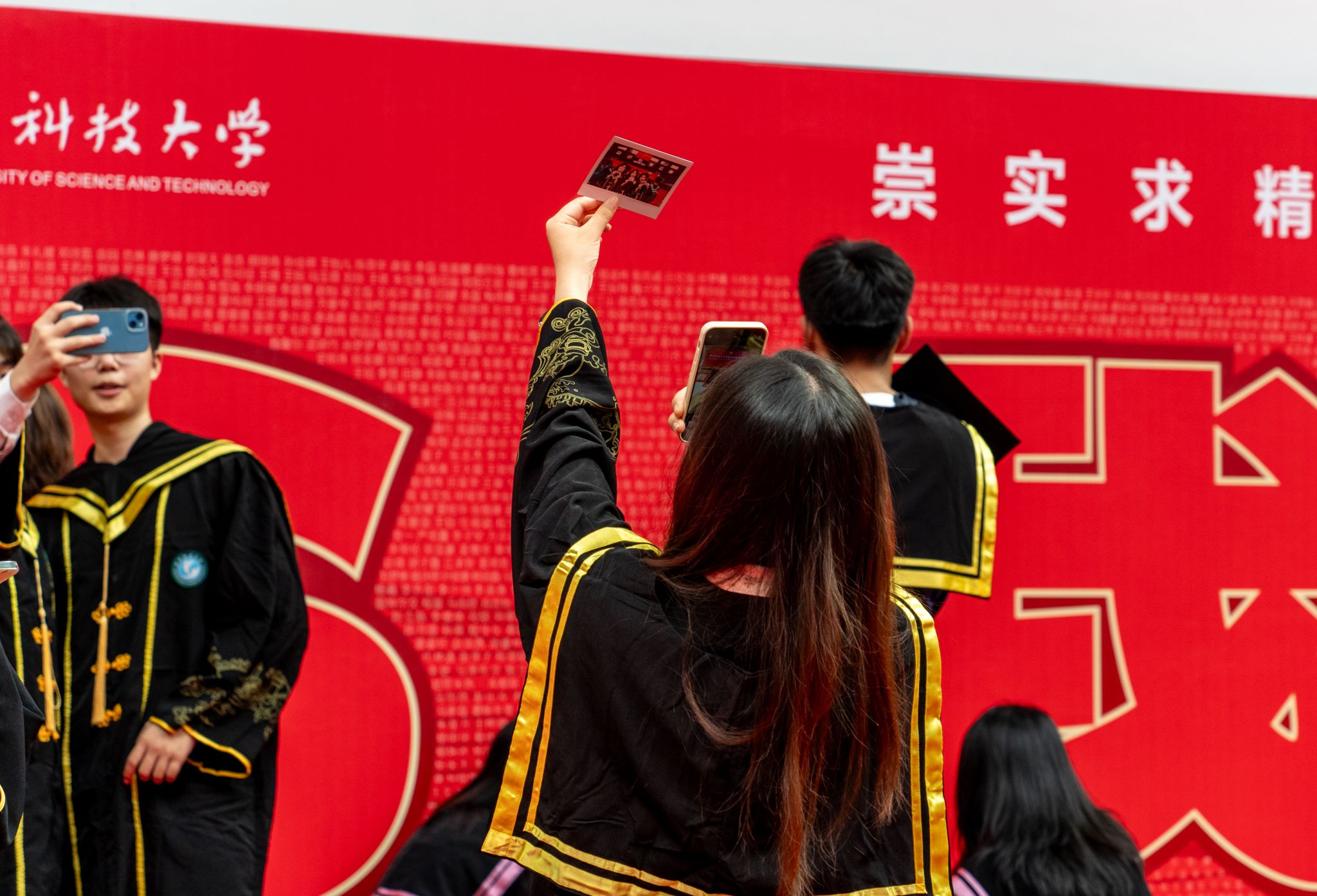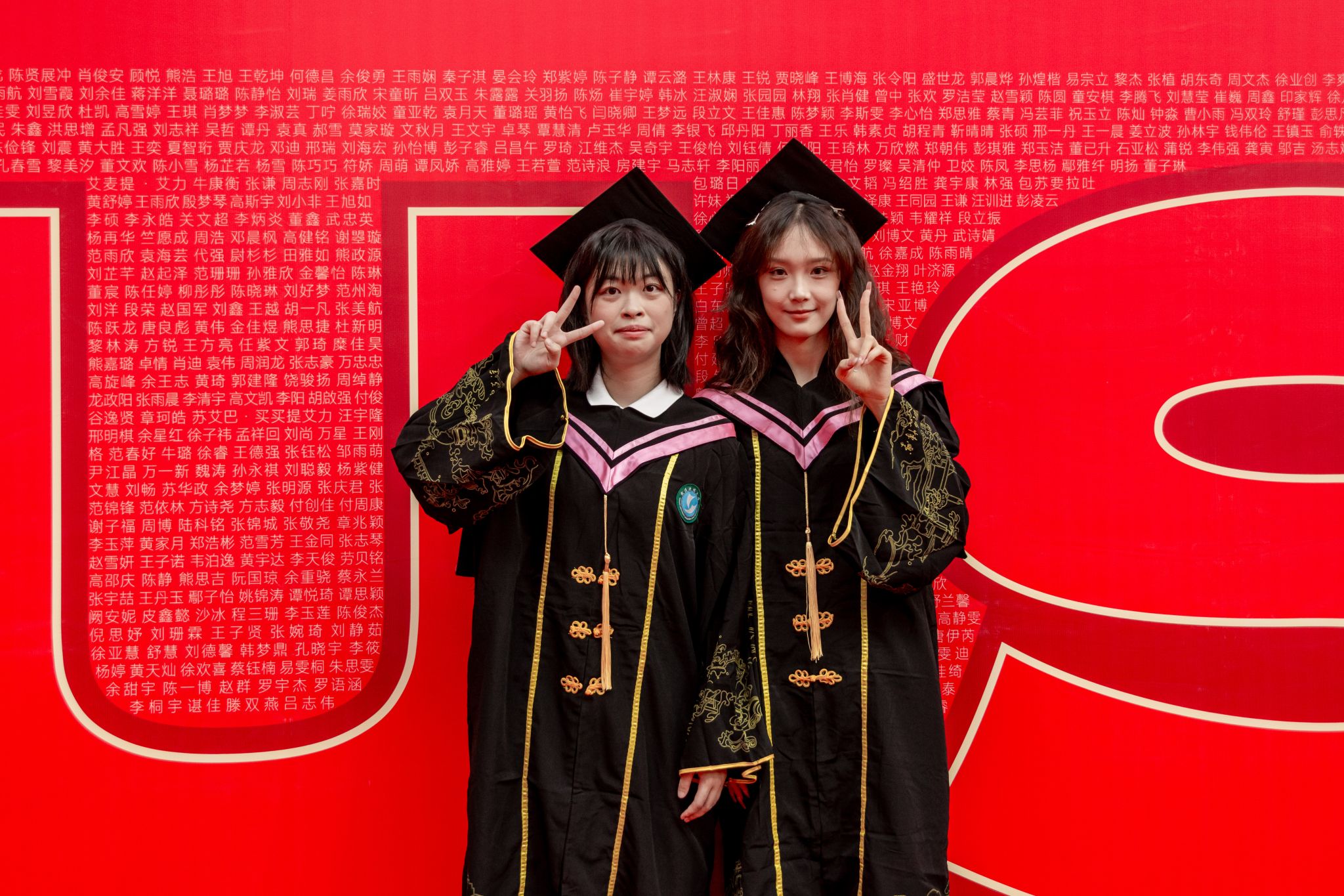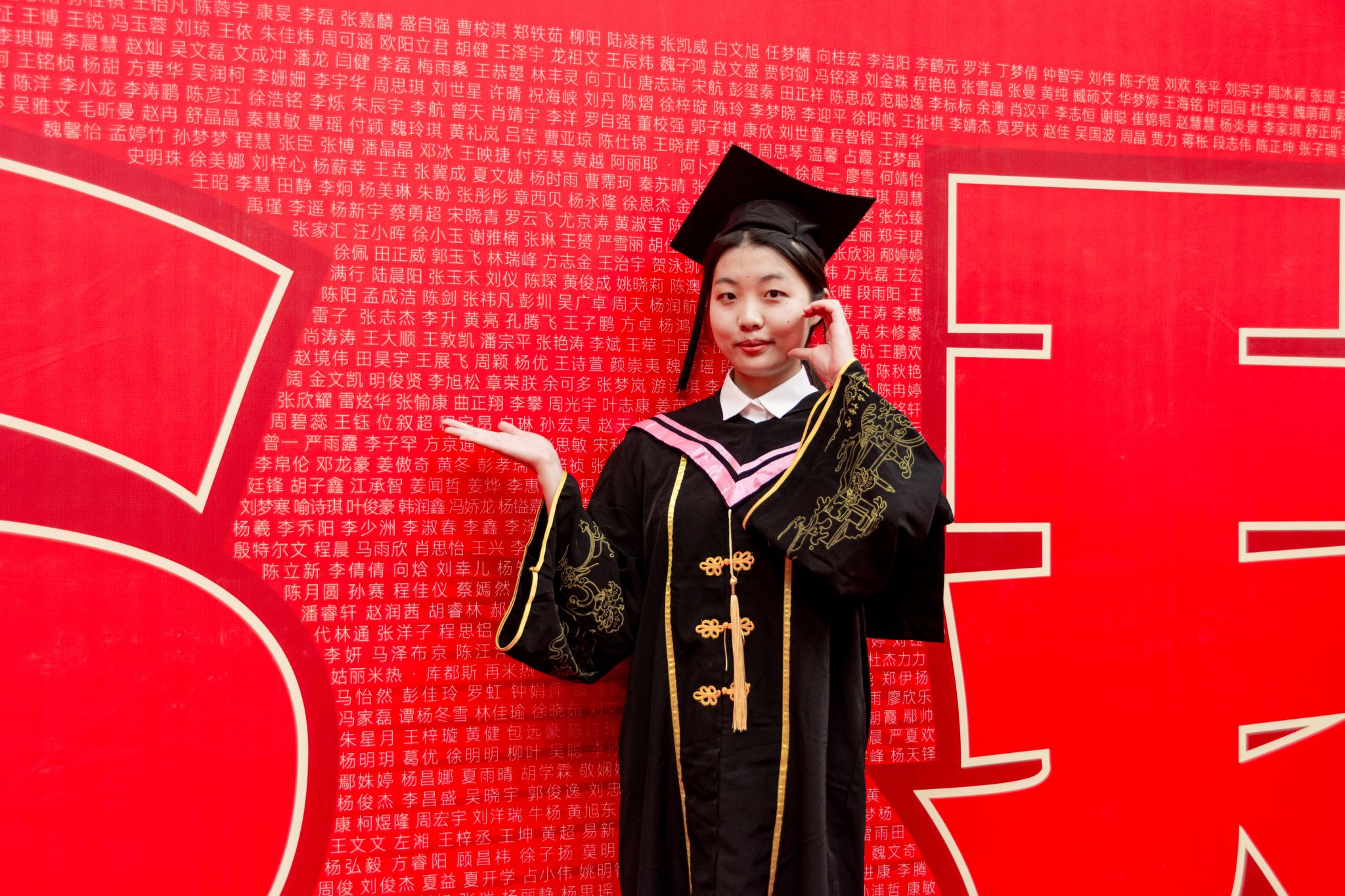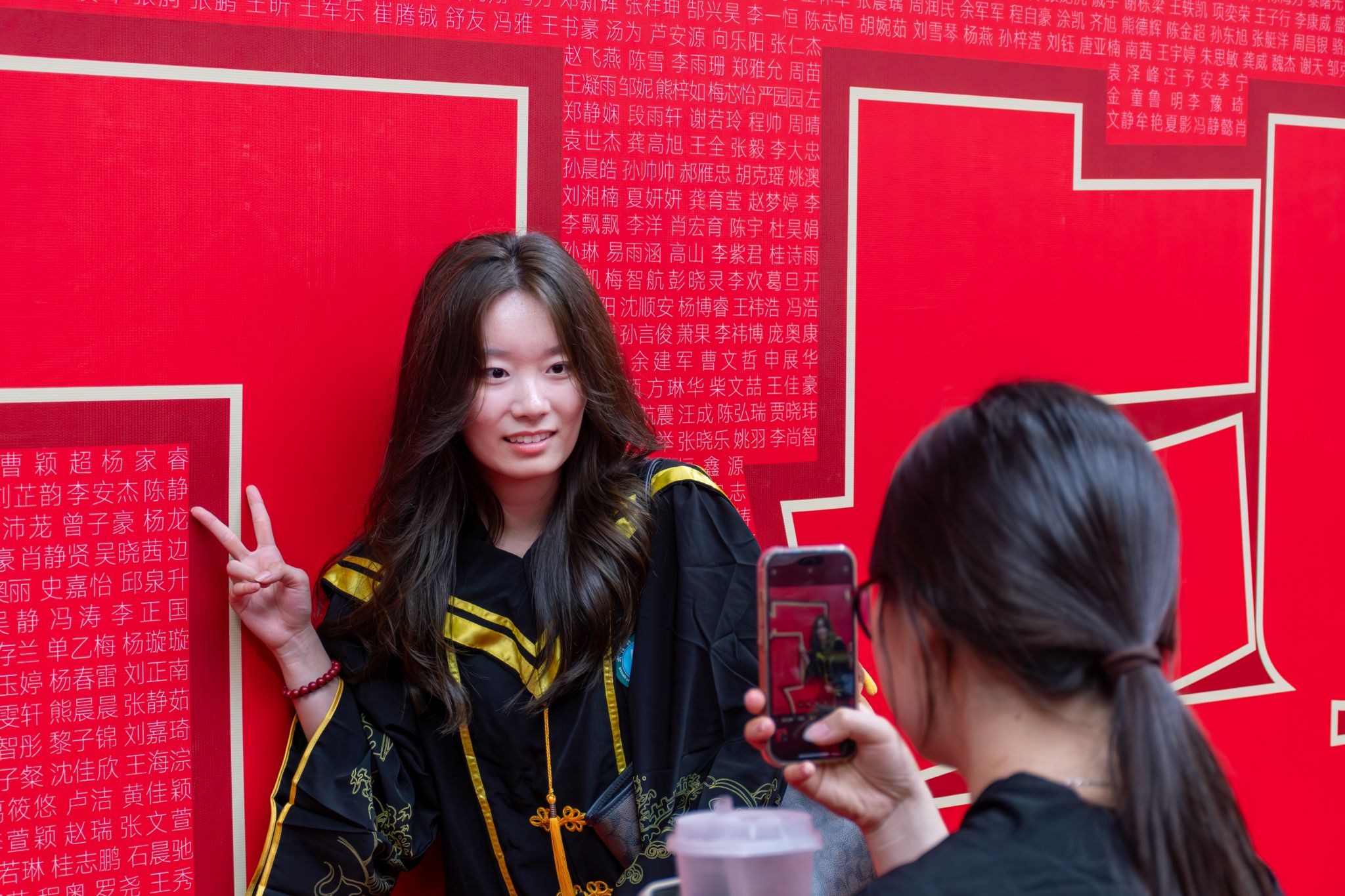 毕业生与人名墙合影留念特写 陈楷林摄