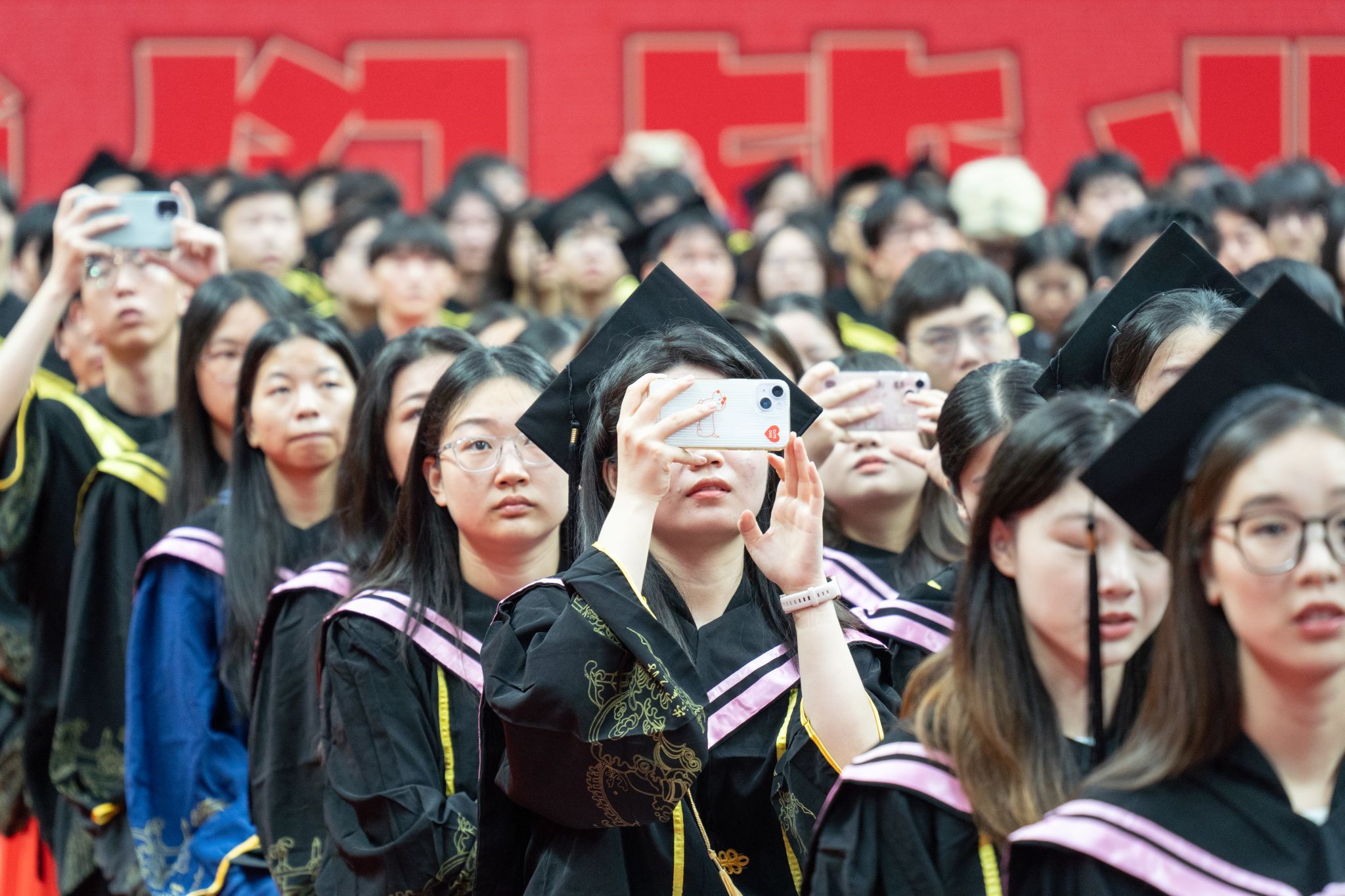 毕业生观看暖场表演 孙正恒摄