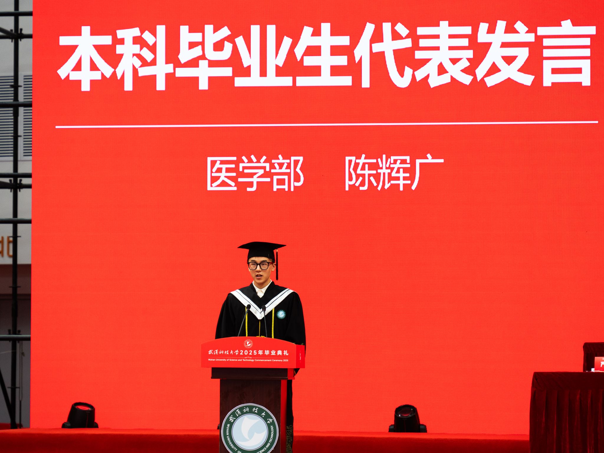 本科毕业生代表发言特写 孙正恒摄
