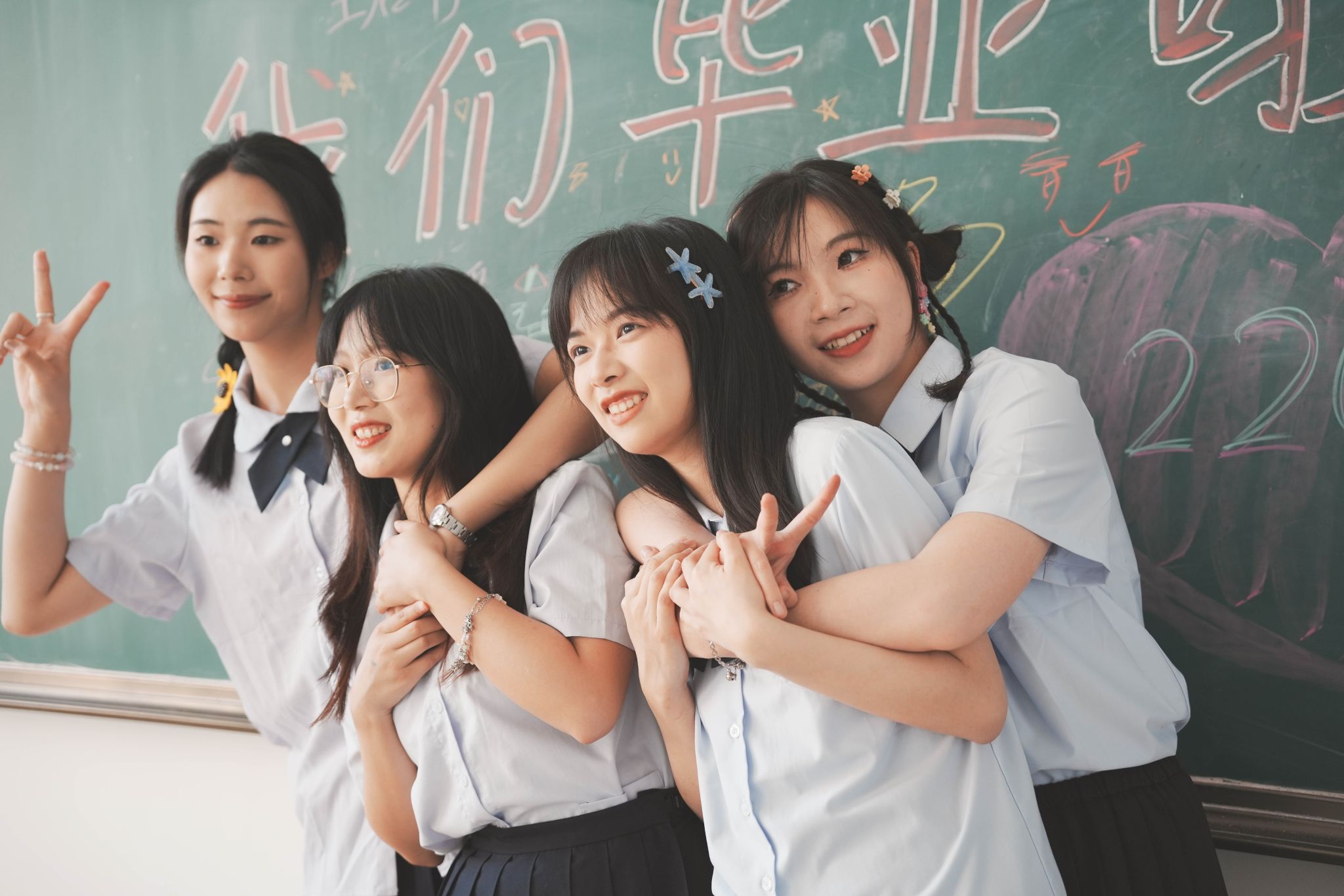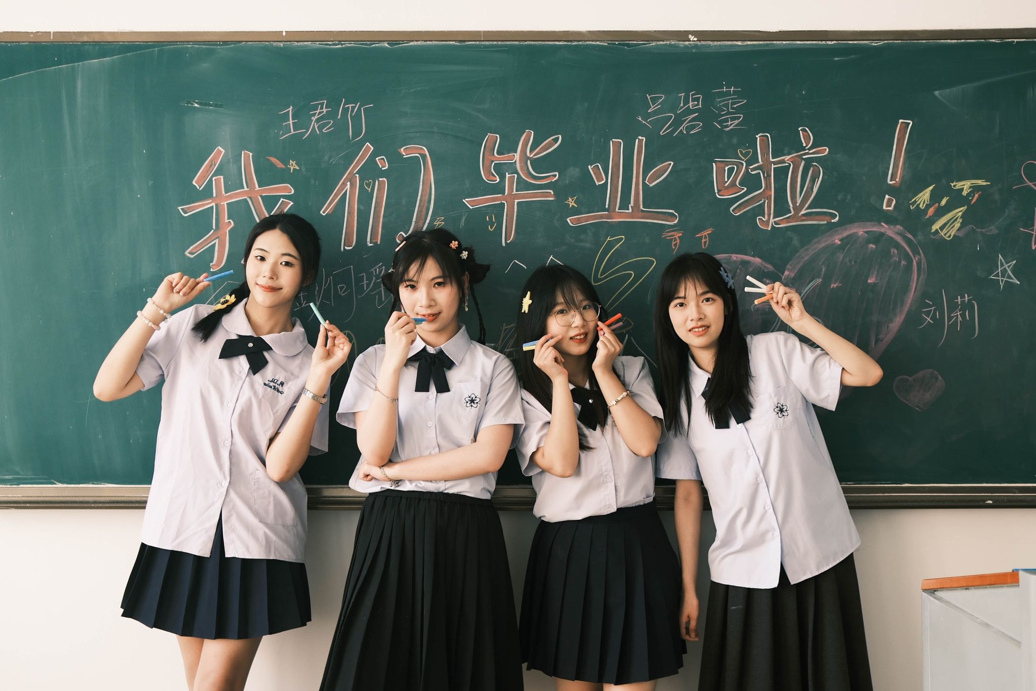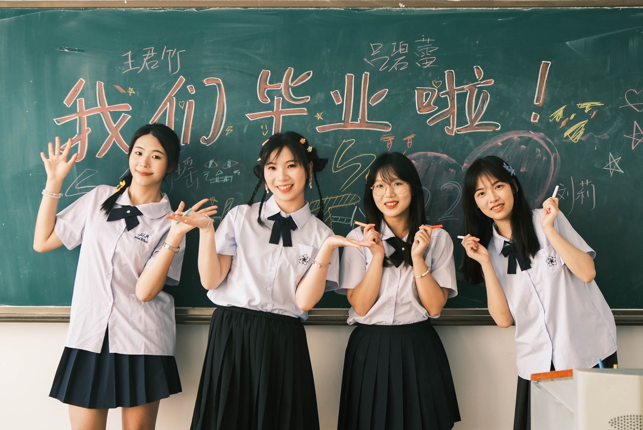 黑板毕业合照中间 陈薏帆摄