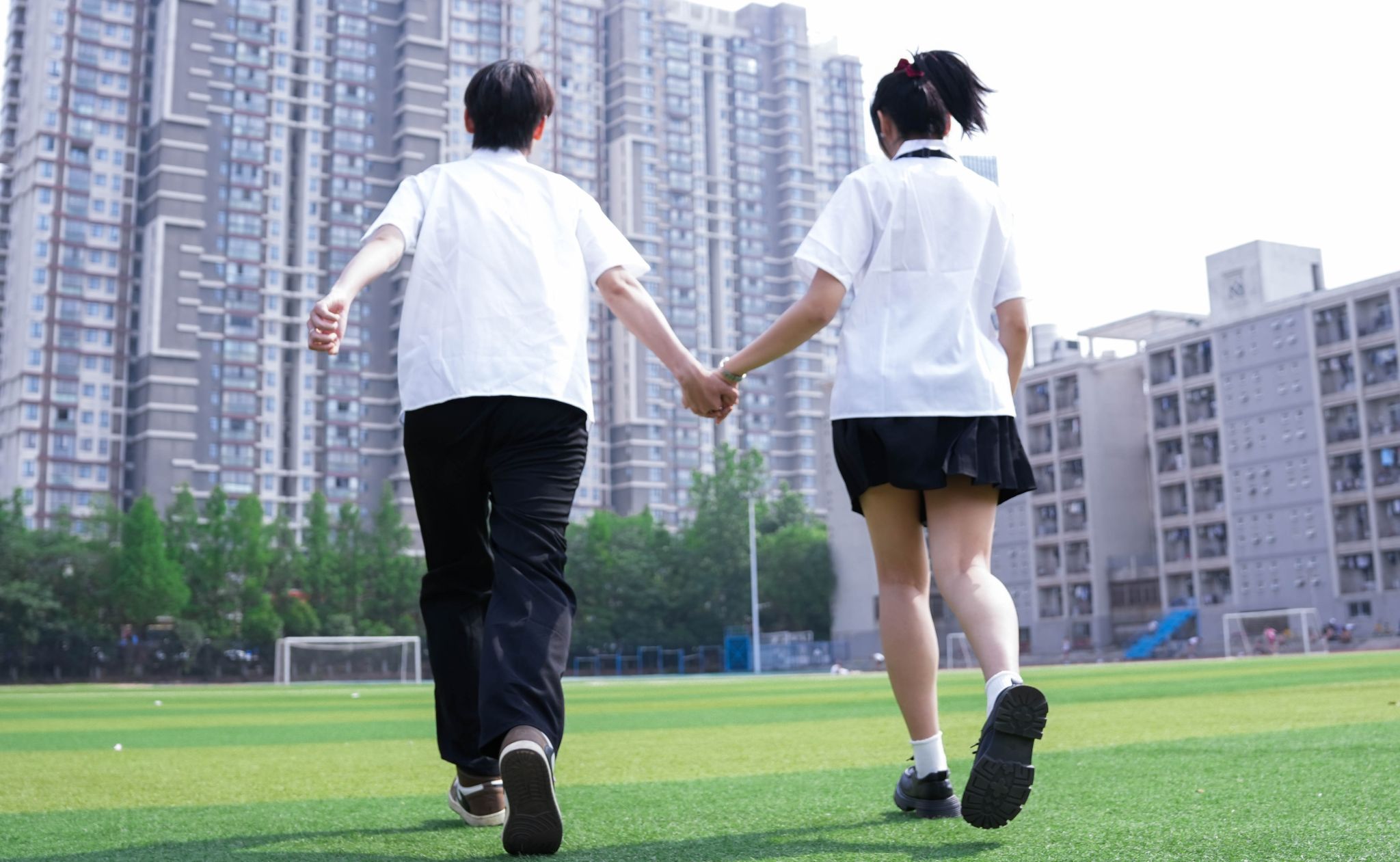 情侣背影向前奔跑 张贝贝摄