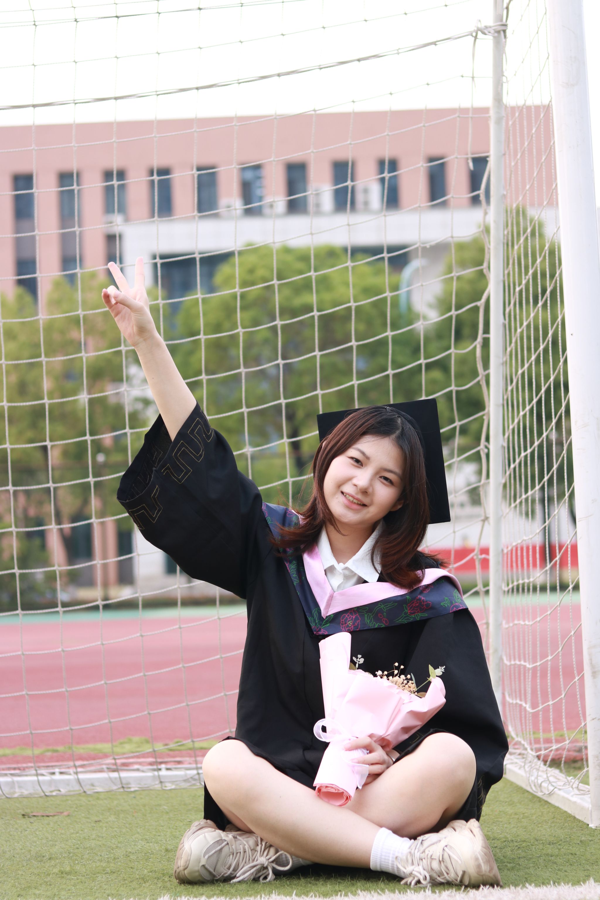 跑道上学士服合照 中景 陈薏帆摄