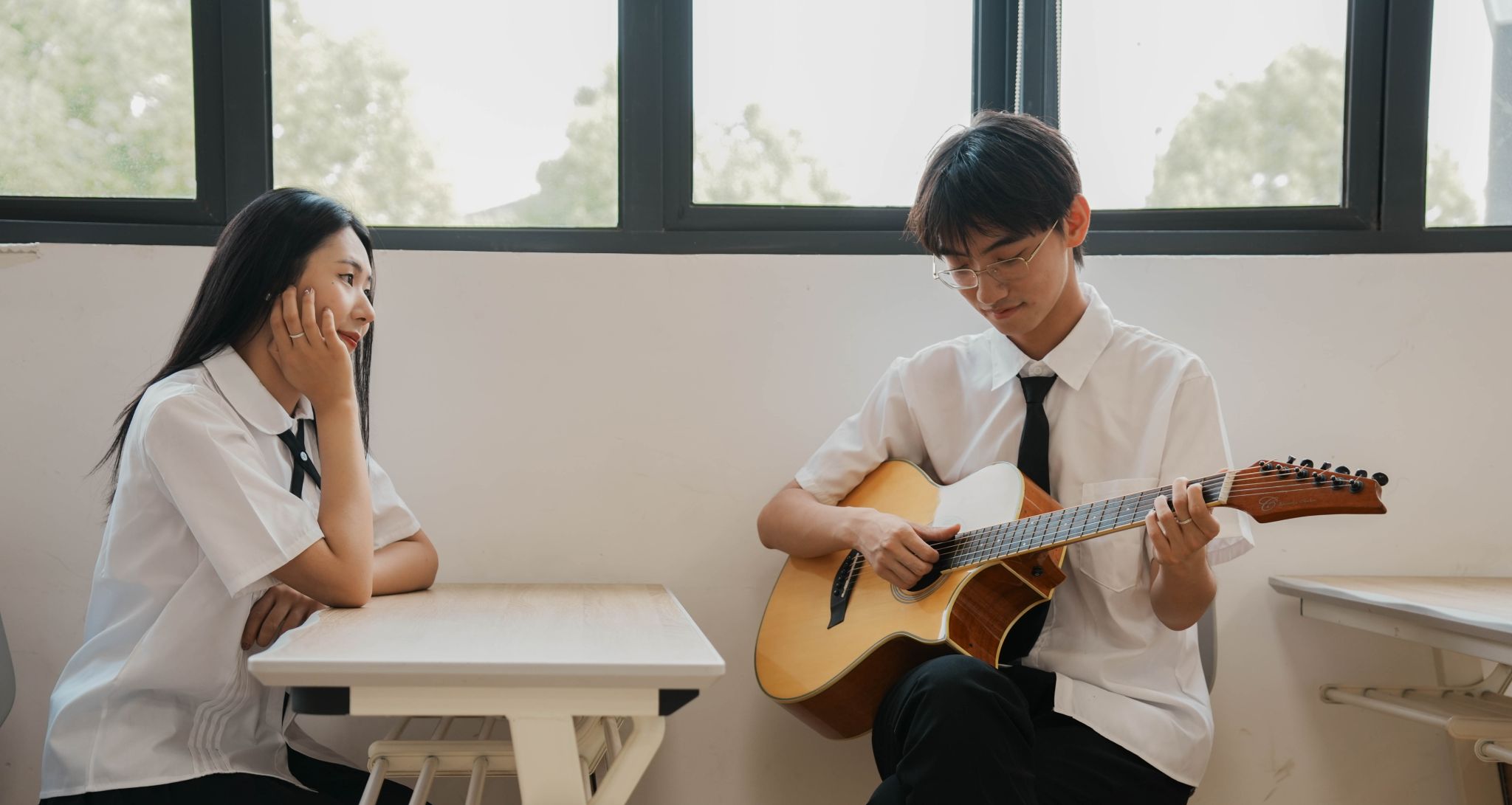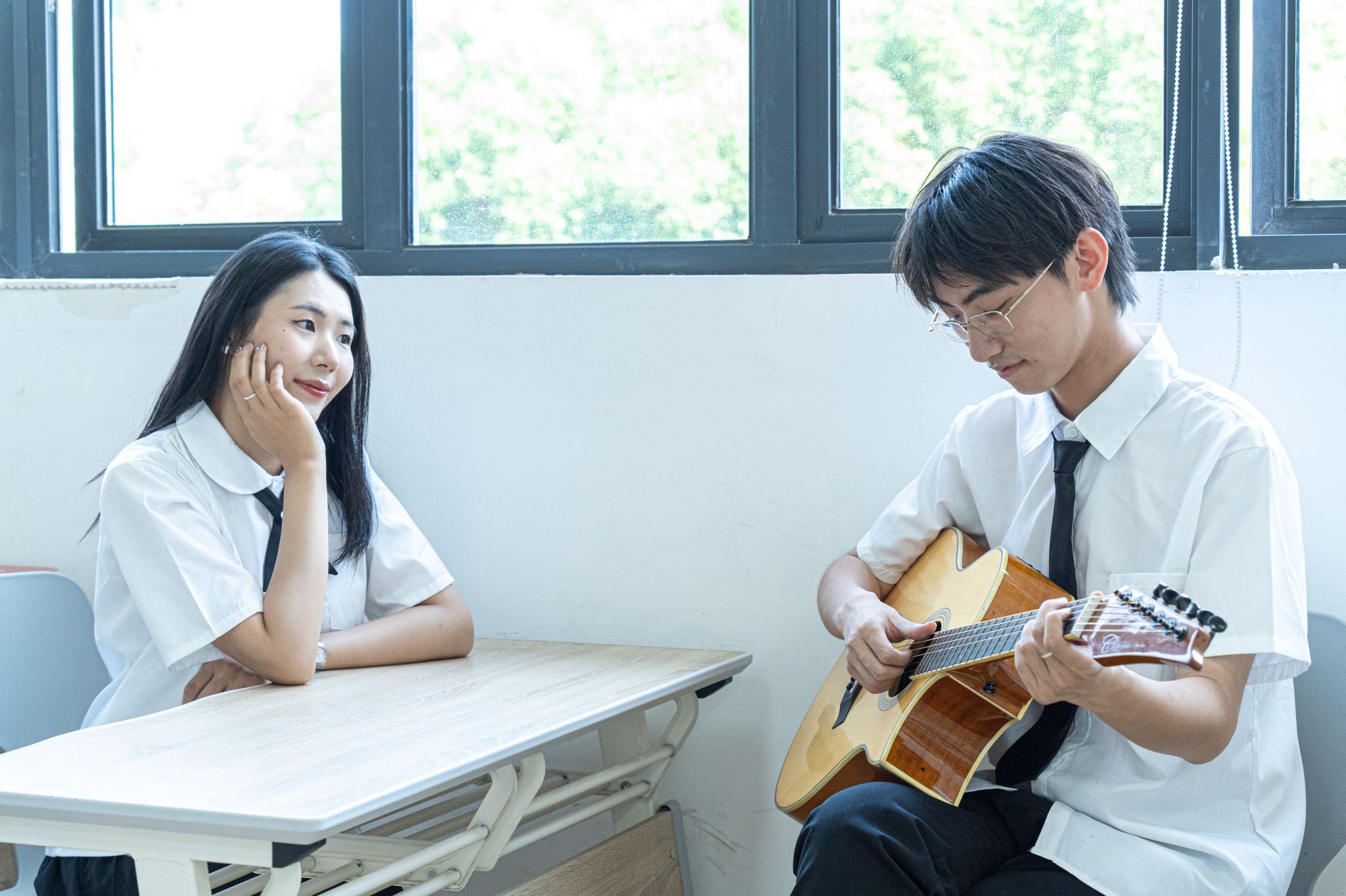 男生看女生弹吉他 张贝贝摄