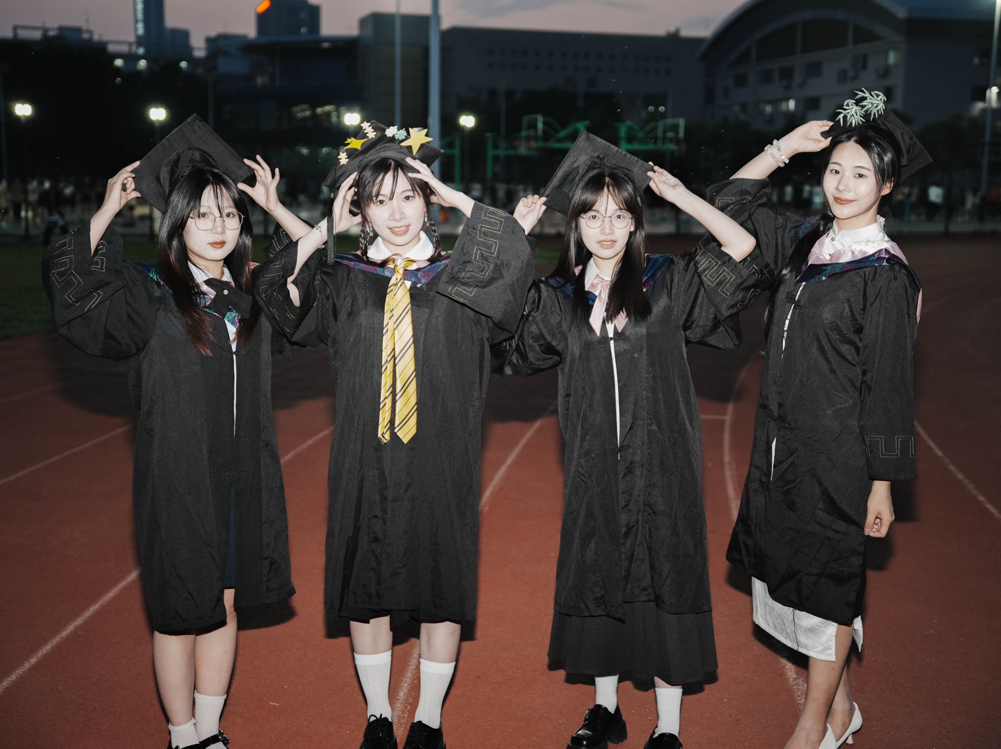 跑道上学士服合照 近景 陈薏帆摄