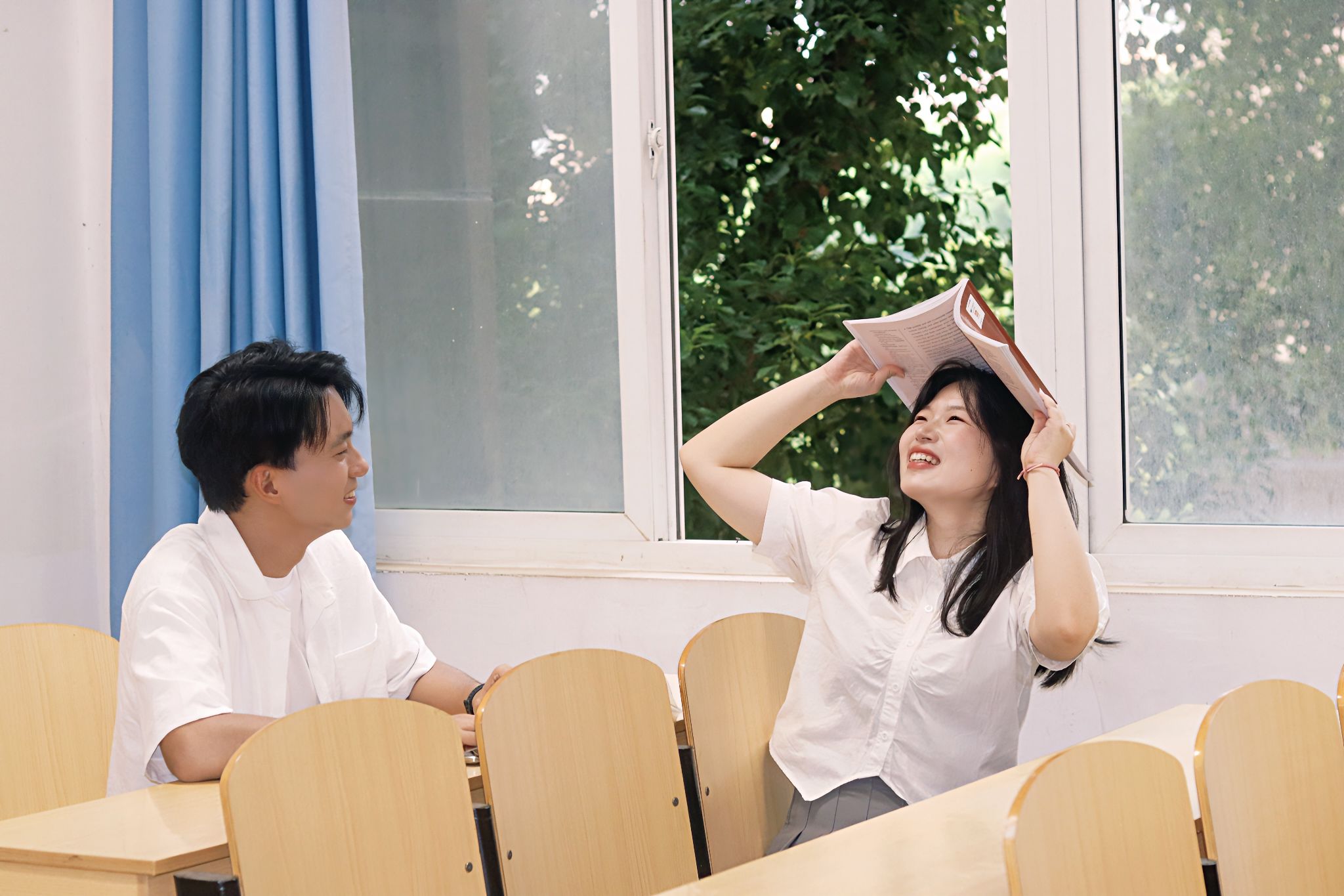 男生看女生读书 张贝贝摄