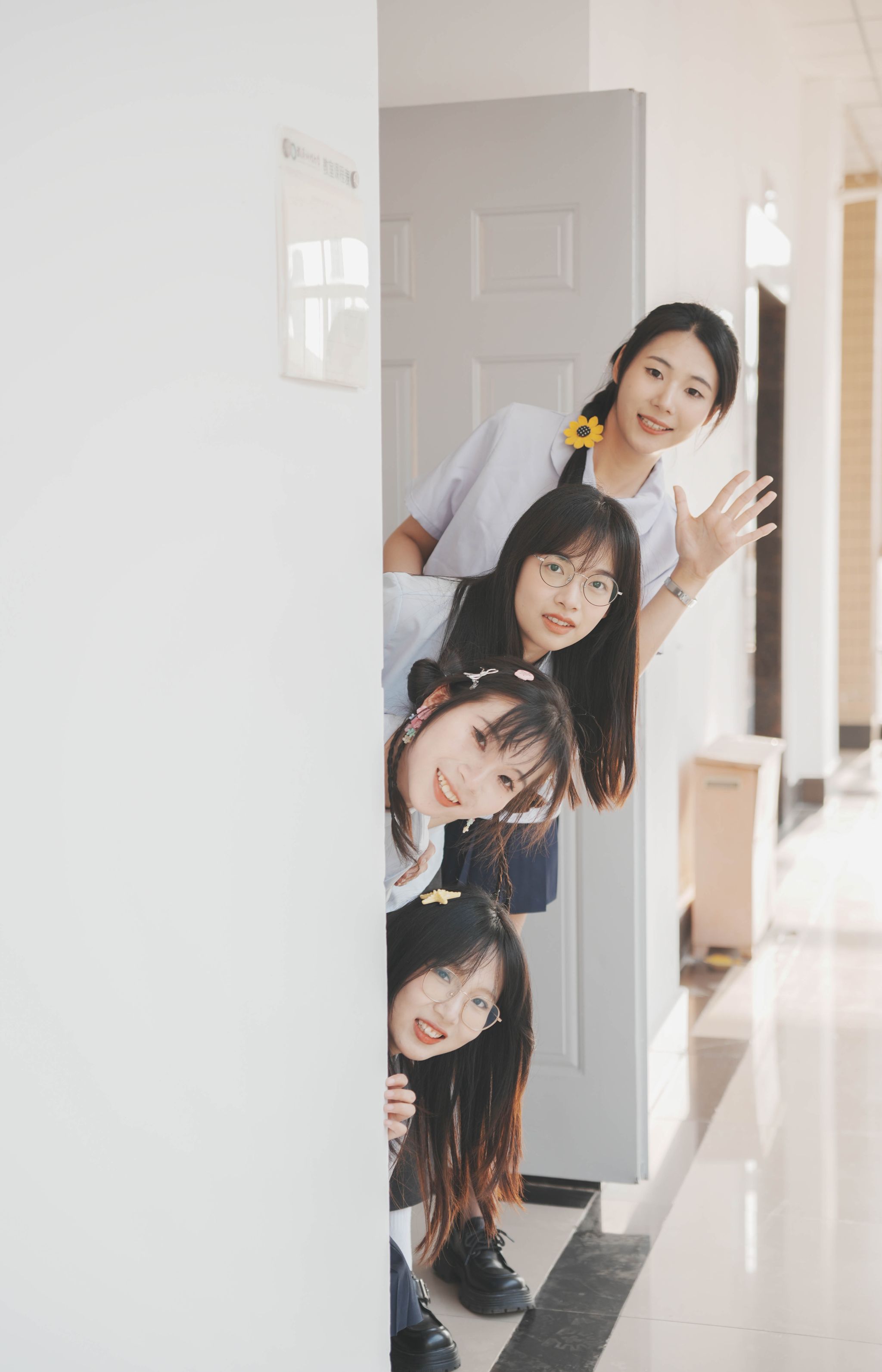 从教室门口向外探头 张贝贝摄