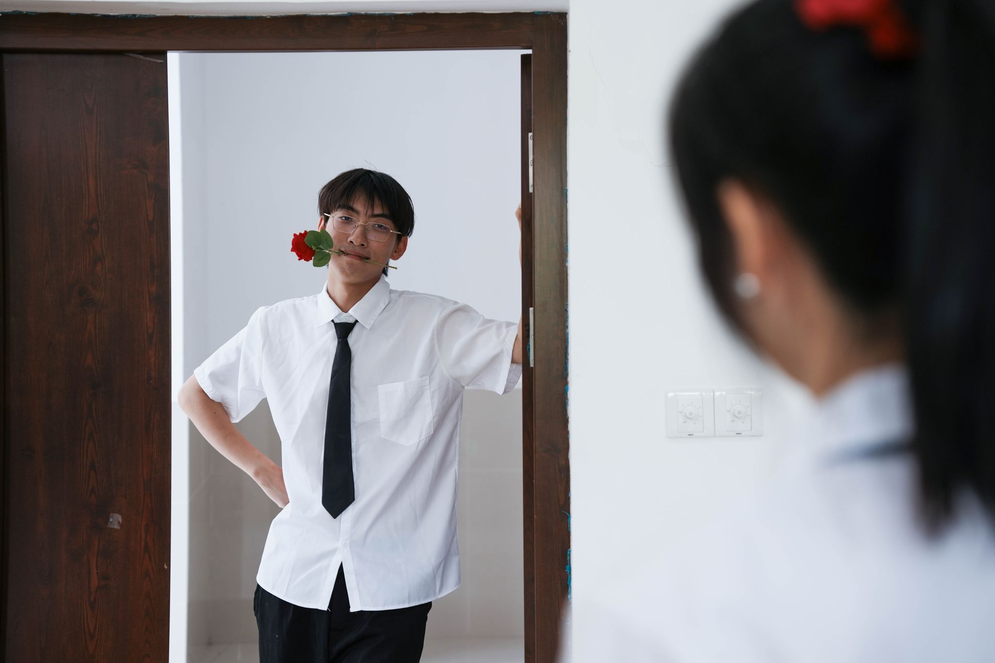 男生叼花 张贝贝摄