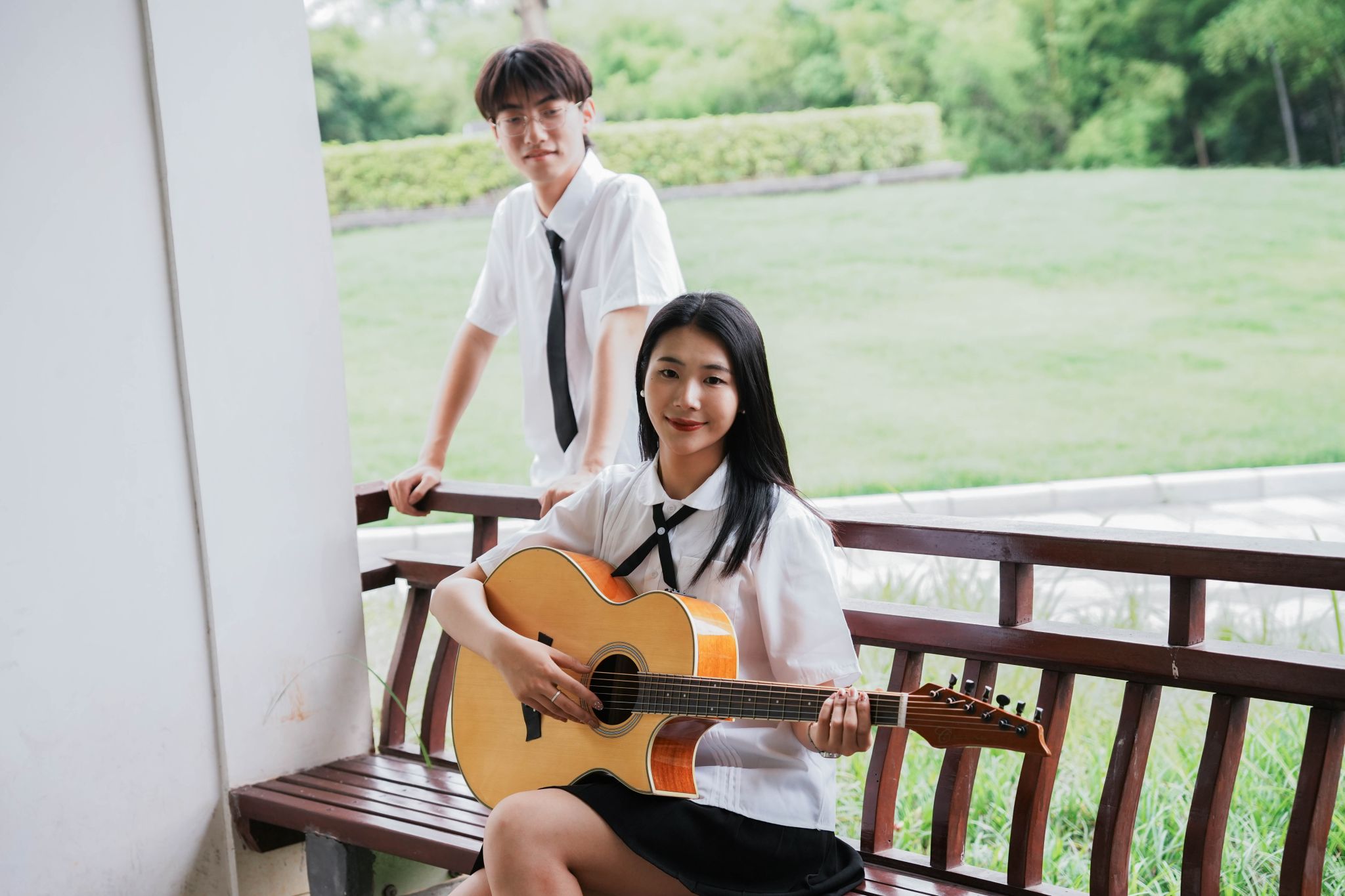 女生看男生弹吉他 张贝贝摄