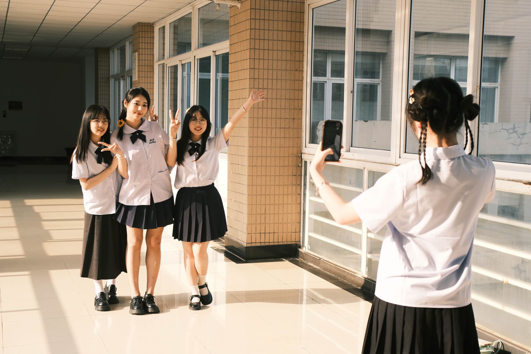 在走廊上合影 张贝贝摄