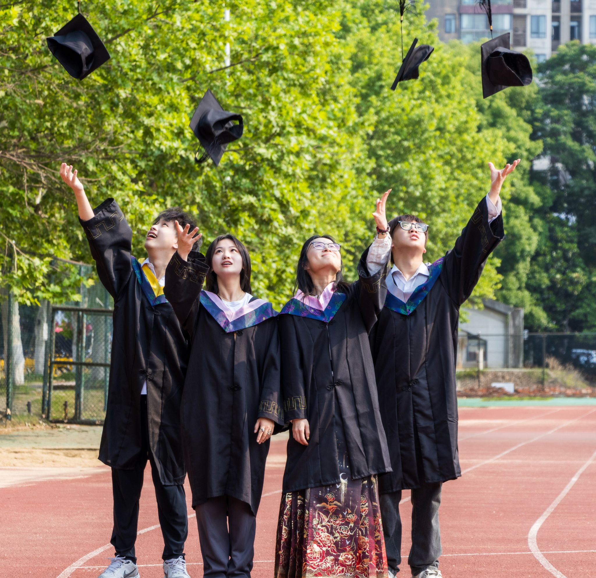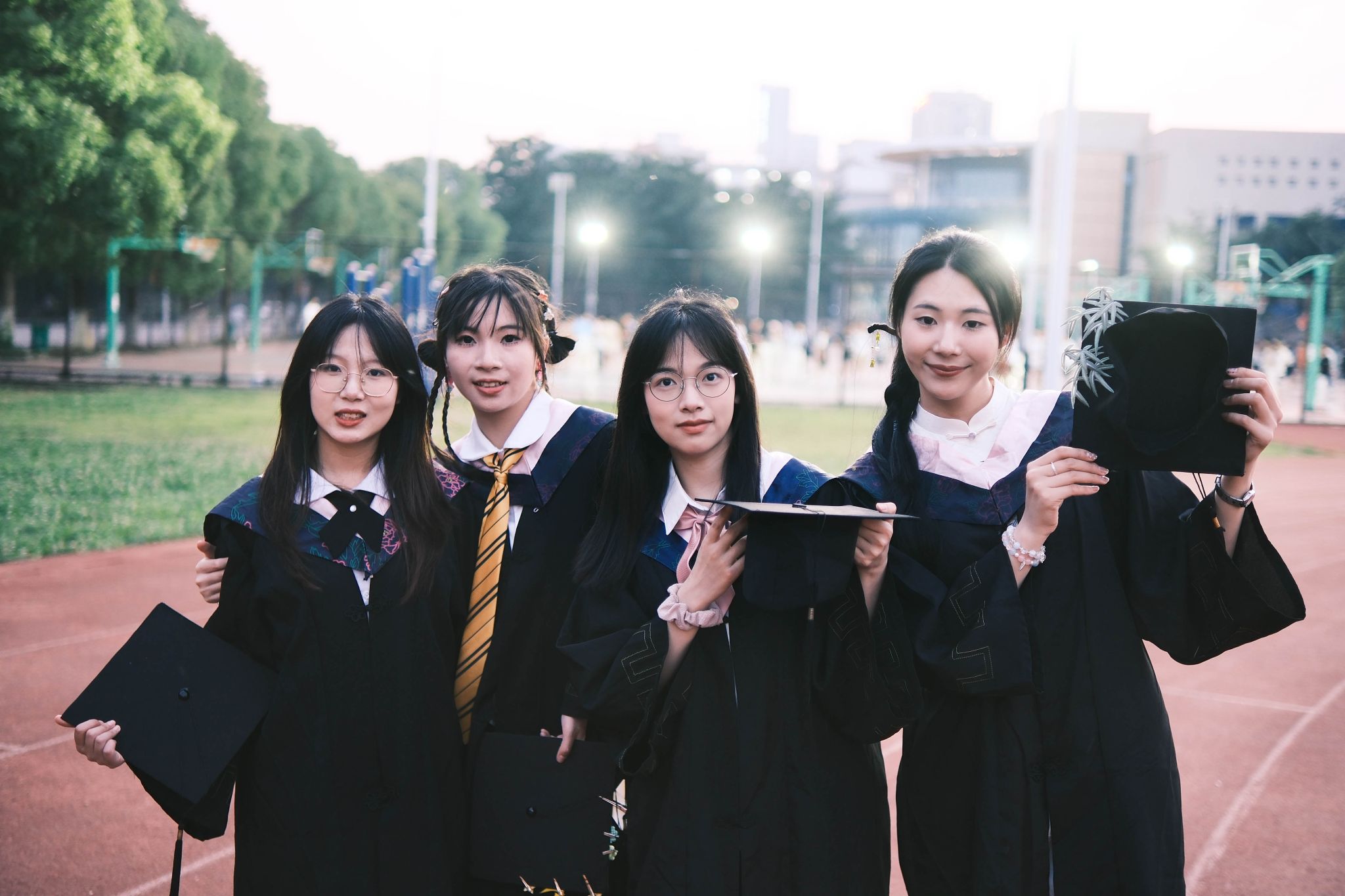在跑道上的学士服合照 张贝贝摄