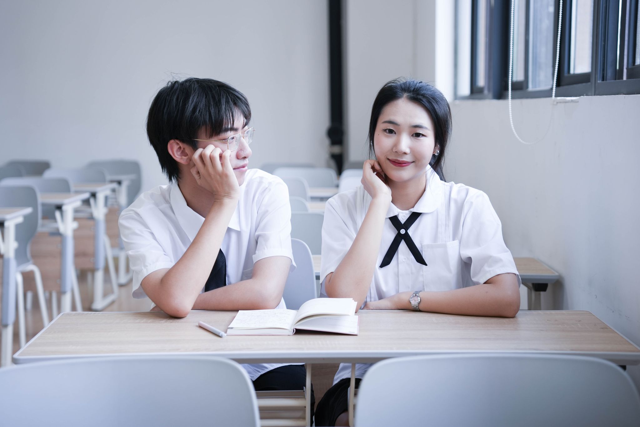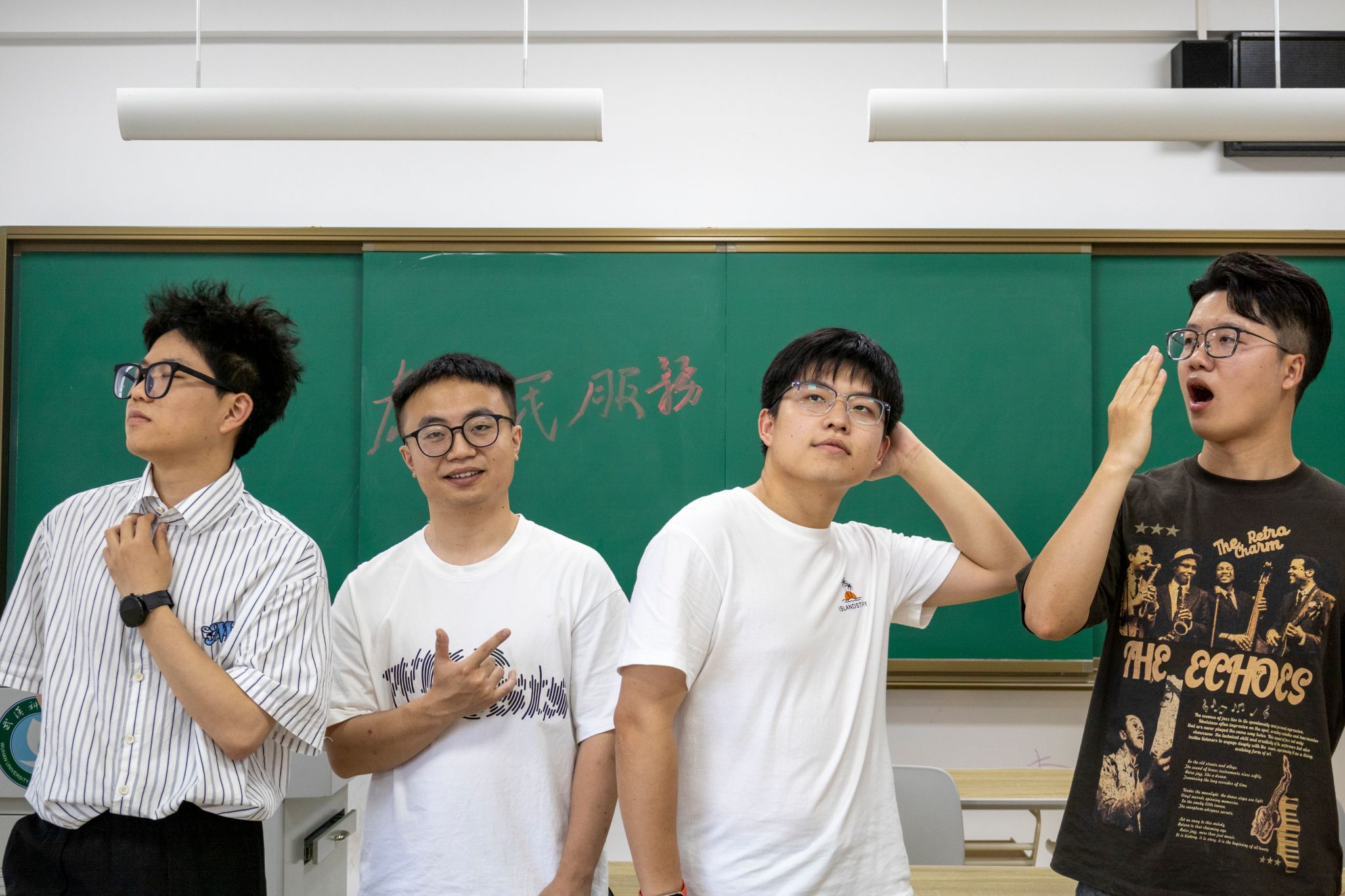 在教室座位上的群像姿势 张贝贝摄