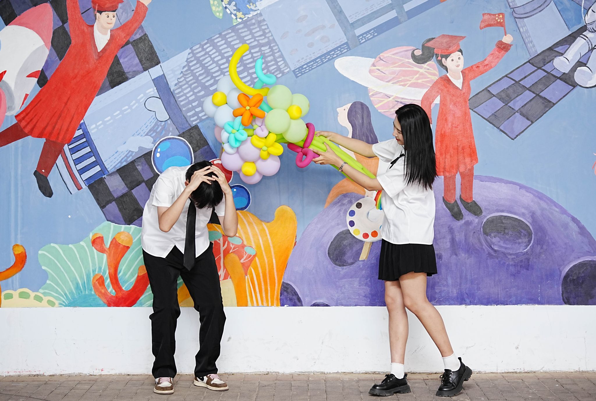 拿道具气球合影 张贝贝摄