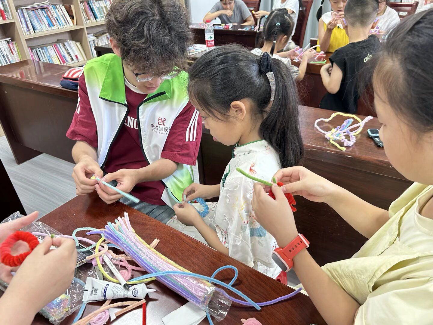实践成员在教孩子们制作手工扭扭棒 石晓妍摄