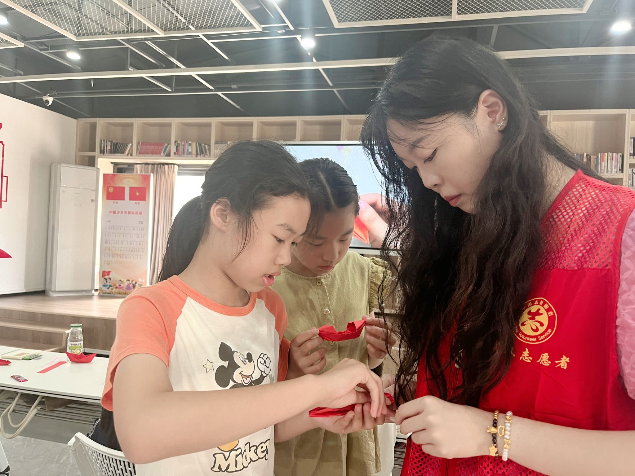 志愿者教小朋友折纸船 崔思妍摄