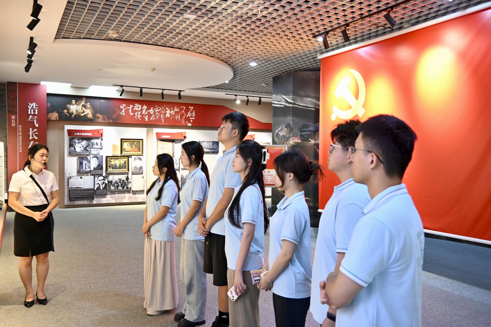 “钢魂铸梦”红色寻访实践团在中钢洛耐展厅参观员工风采 郭家豪摄