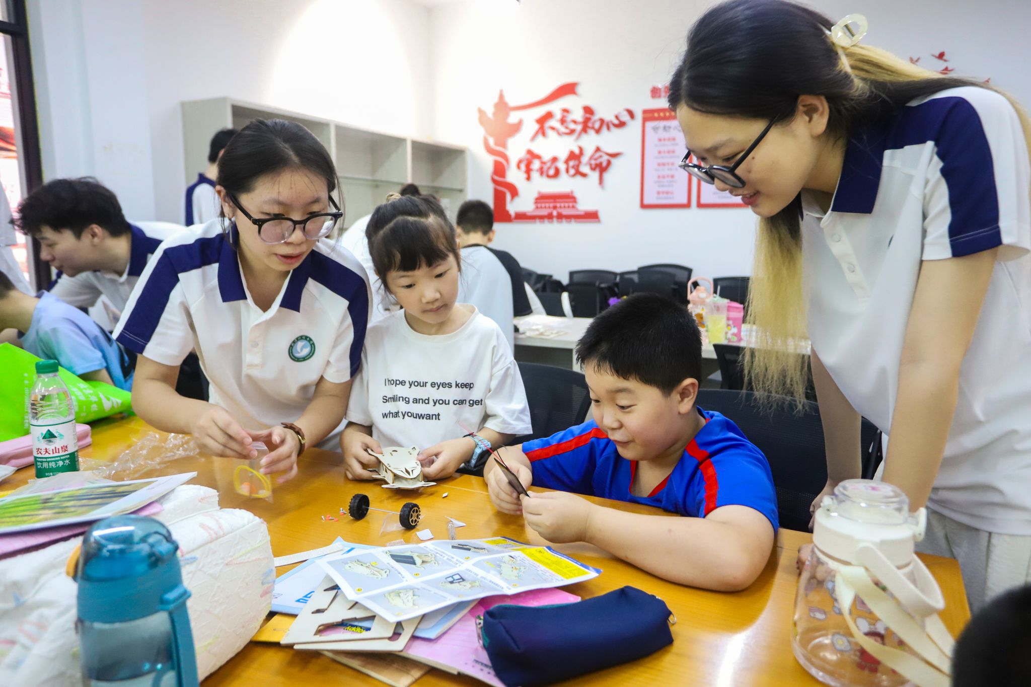 实践队成员带学生制作科技小车 杨欣怡