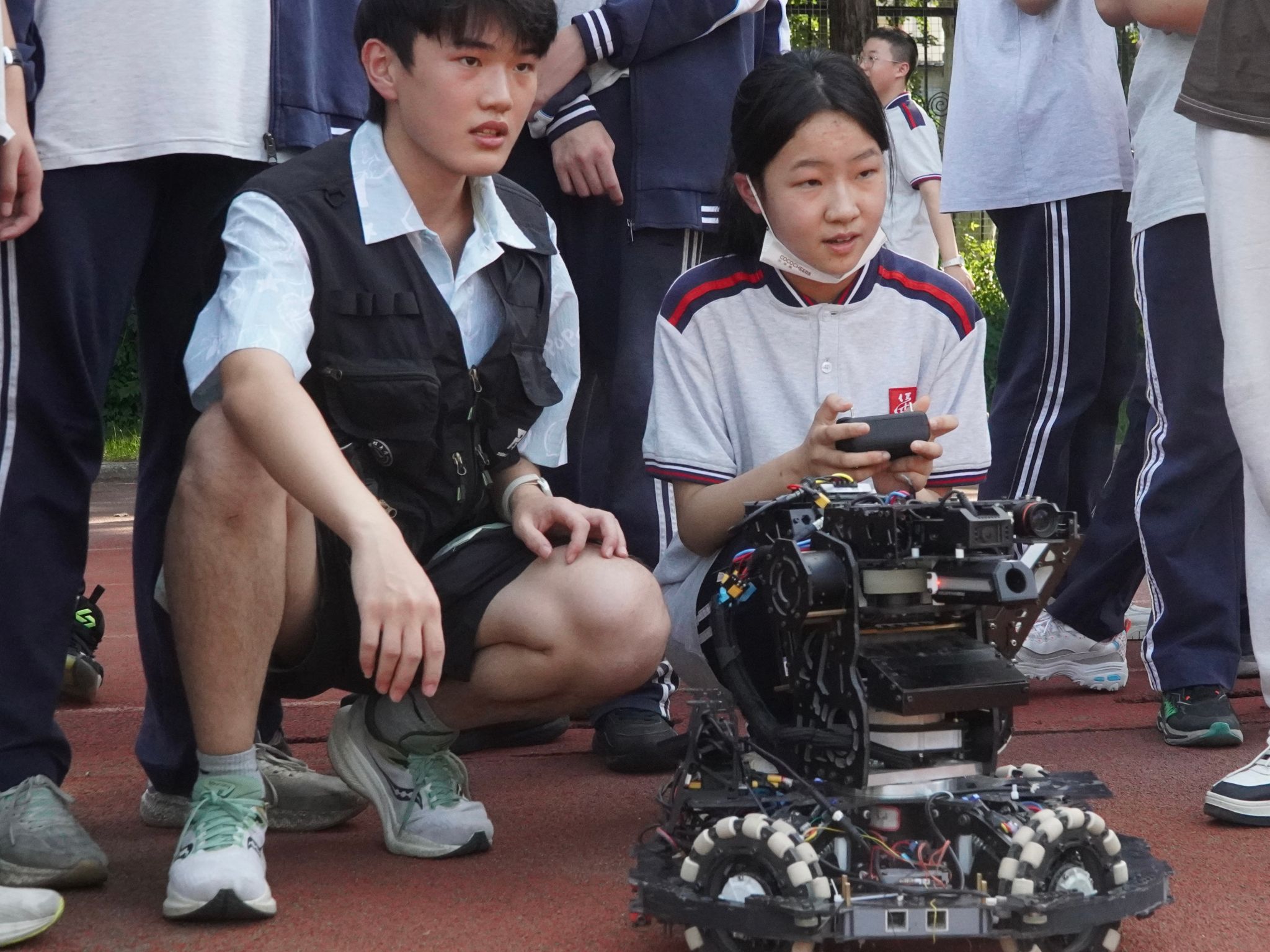 实践队员指导任家路中学学生控制机器人 吴孟阳摄