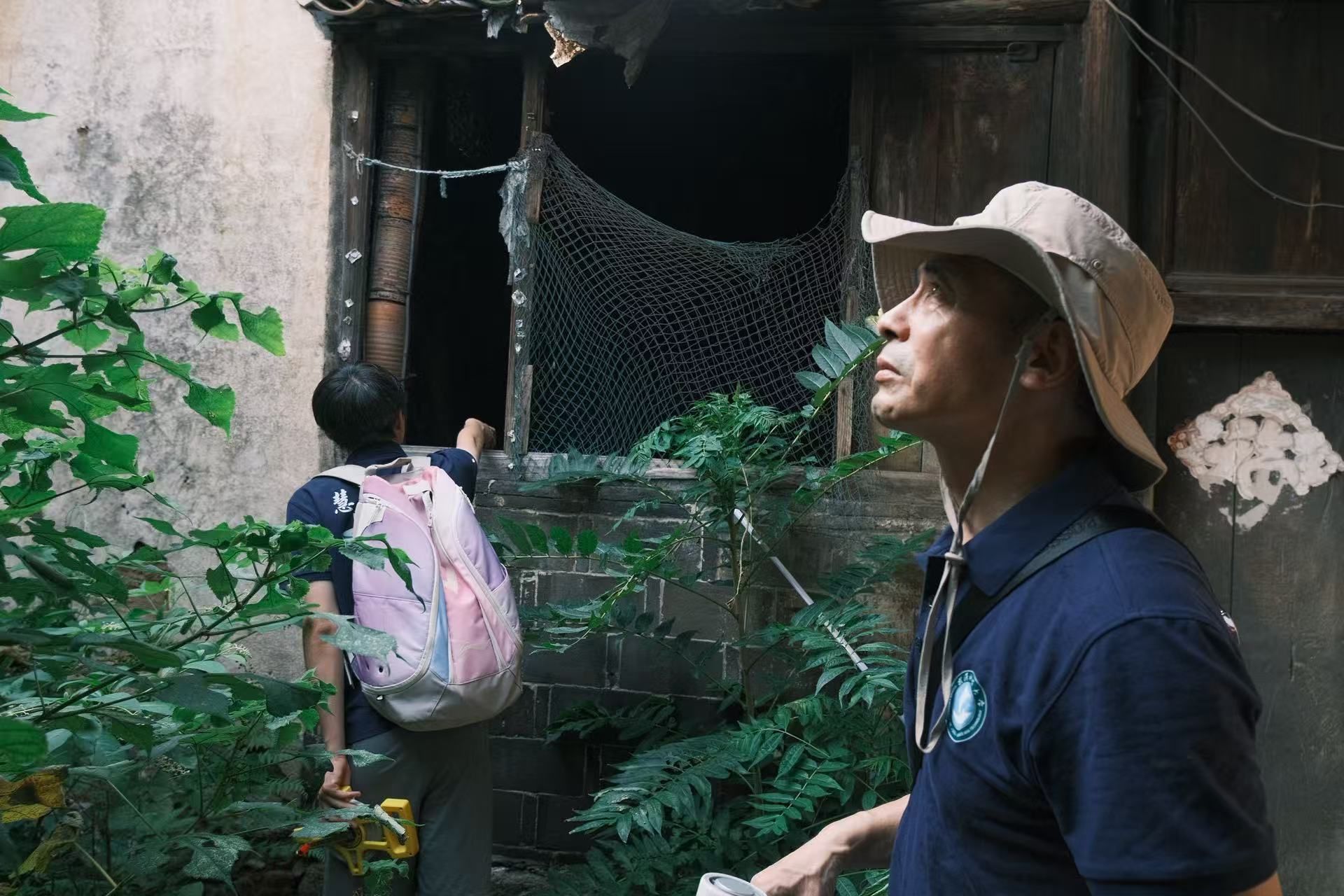 团队指导老师肖霄带领团队对丁湾村留存的建筑进行实地考察 夏锦萱摄