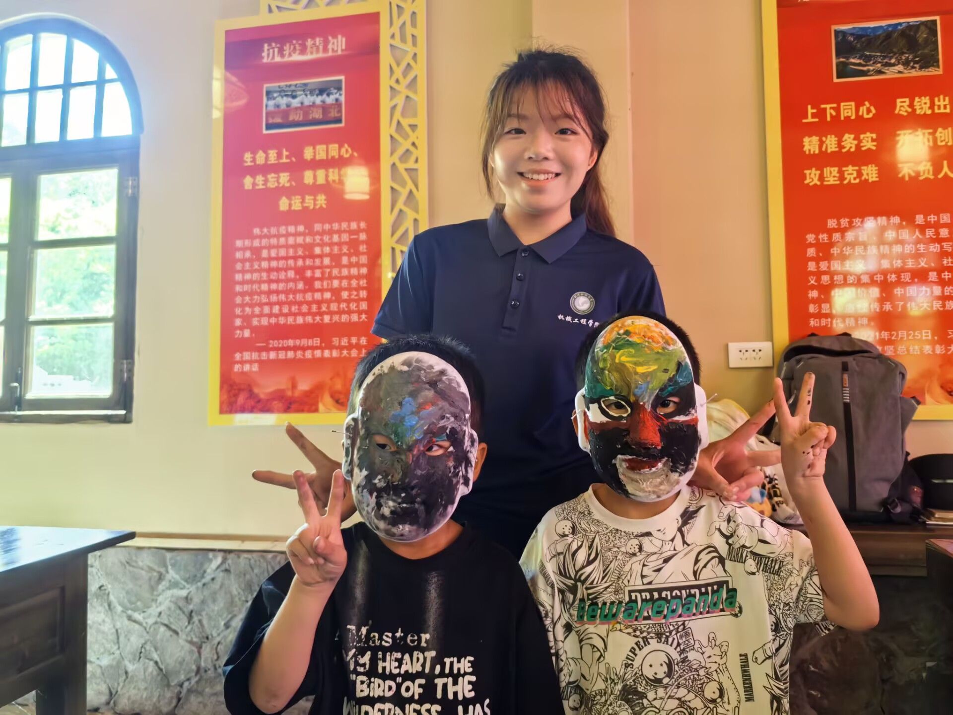 实践队员与小朋友开展脸谱绘画课 杜秉朔摄
