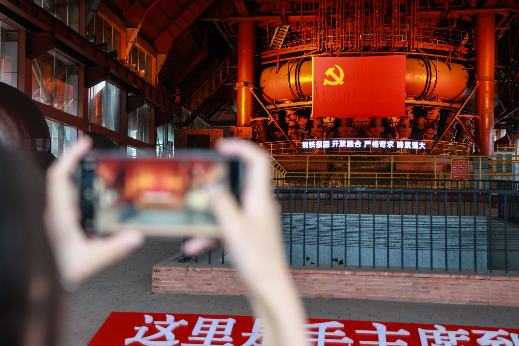 实践团成员震撼于眼前武钢一号高炉,拍照留下纪念 郭家豪摄