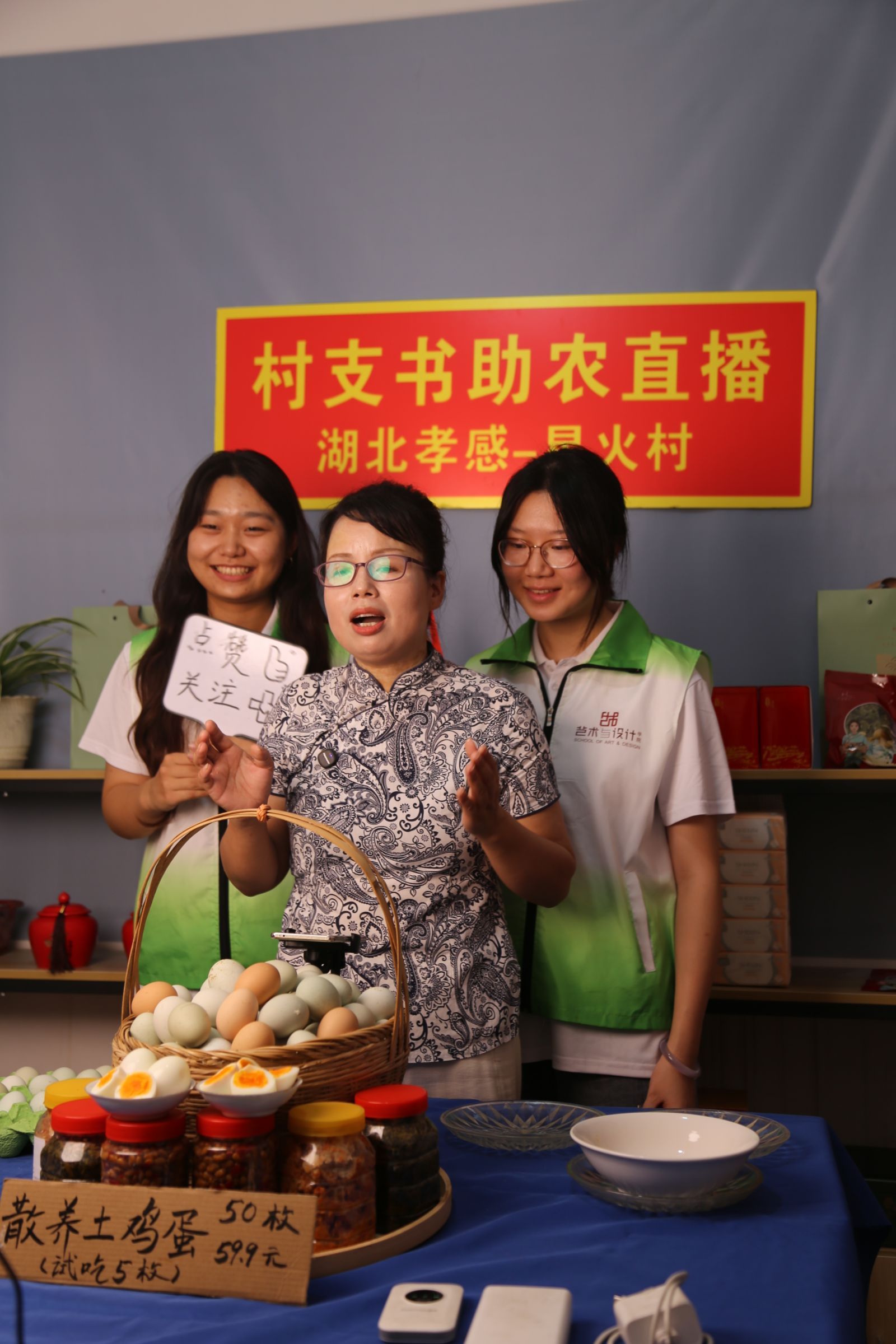 实践团成员和村支书一起助农直播 张童宇摄