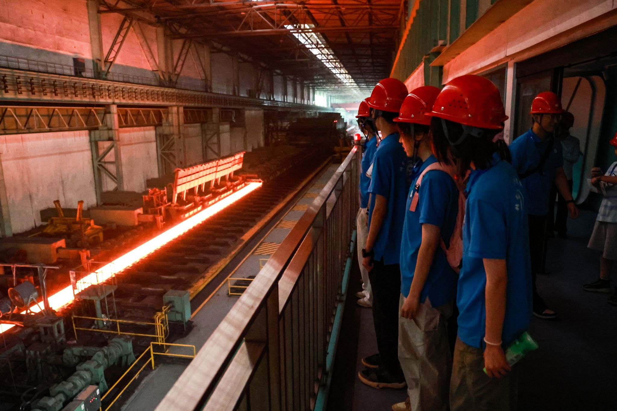 “钢魂铸梦”红色寻访实践团成员参观武钢集团钢板生产线 郭家豪摄