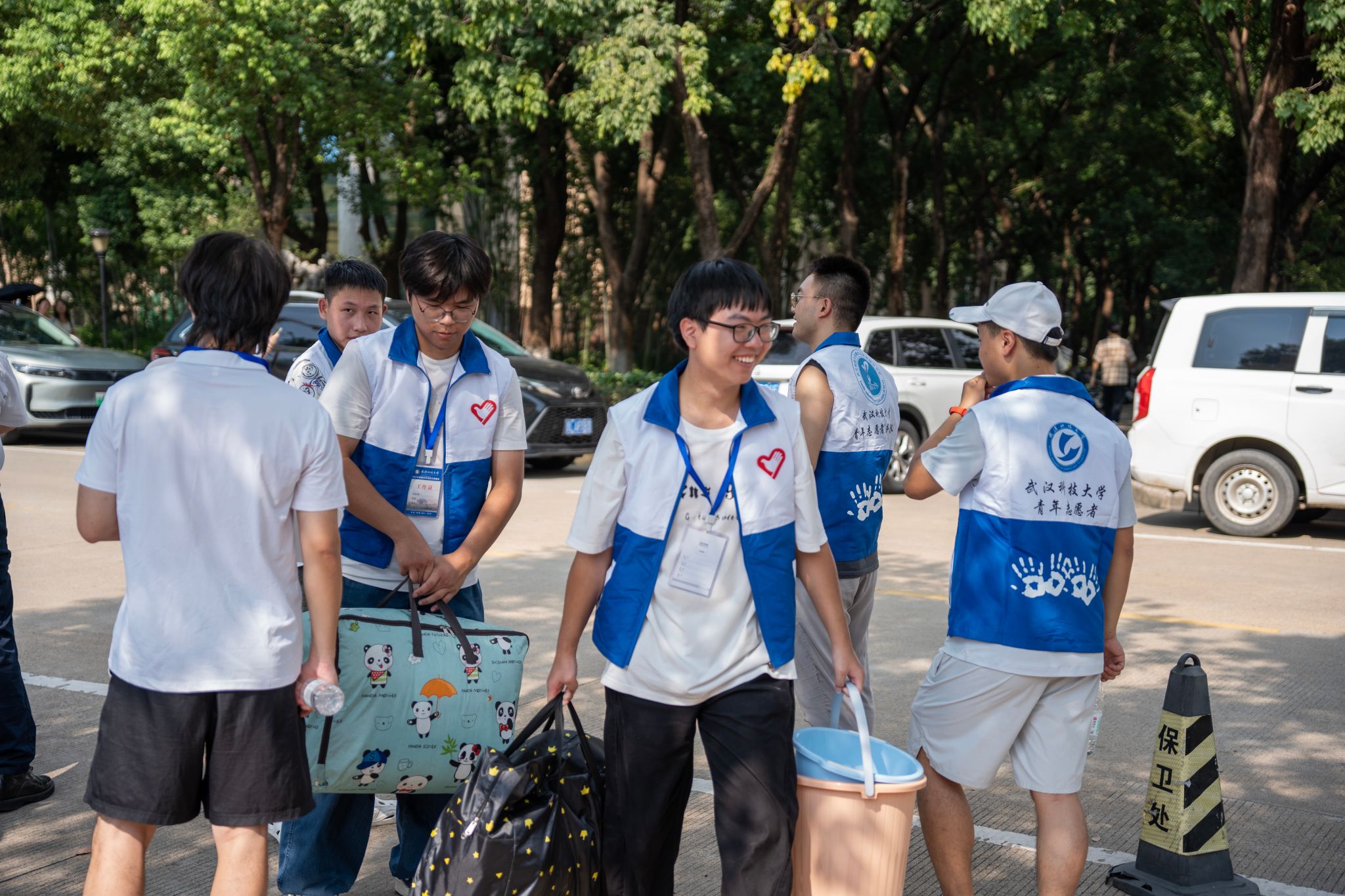 志愿者们为新生提行李 张贝贝摄