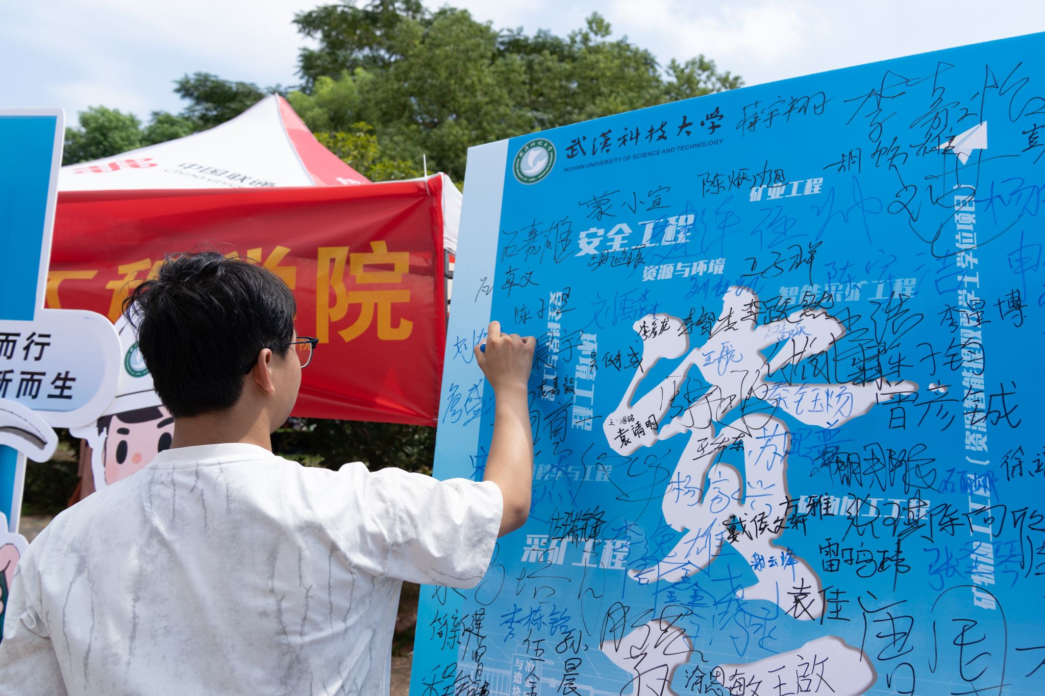 新生在资环学院签名板上签名-孙正恒摄
